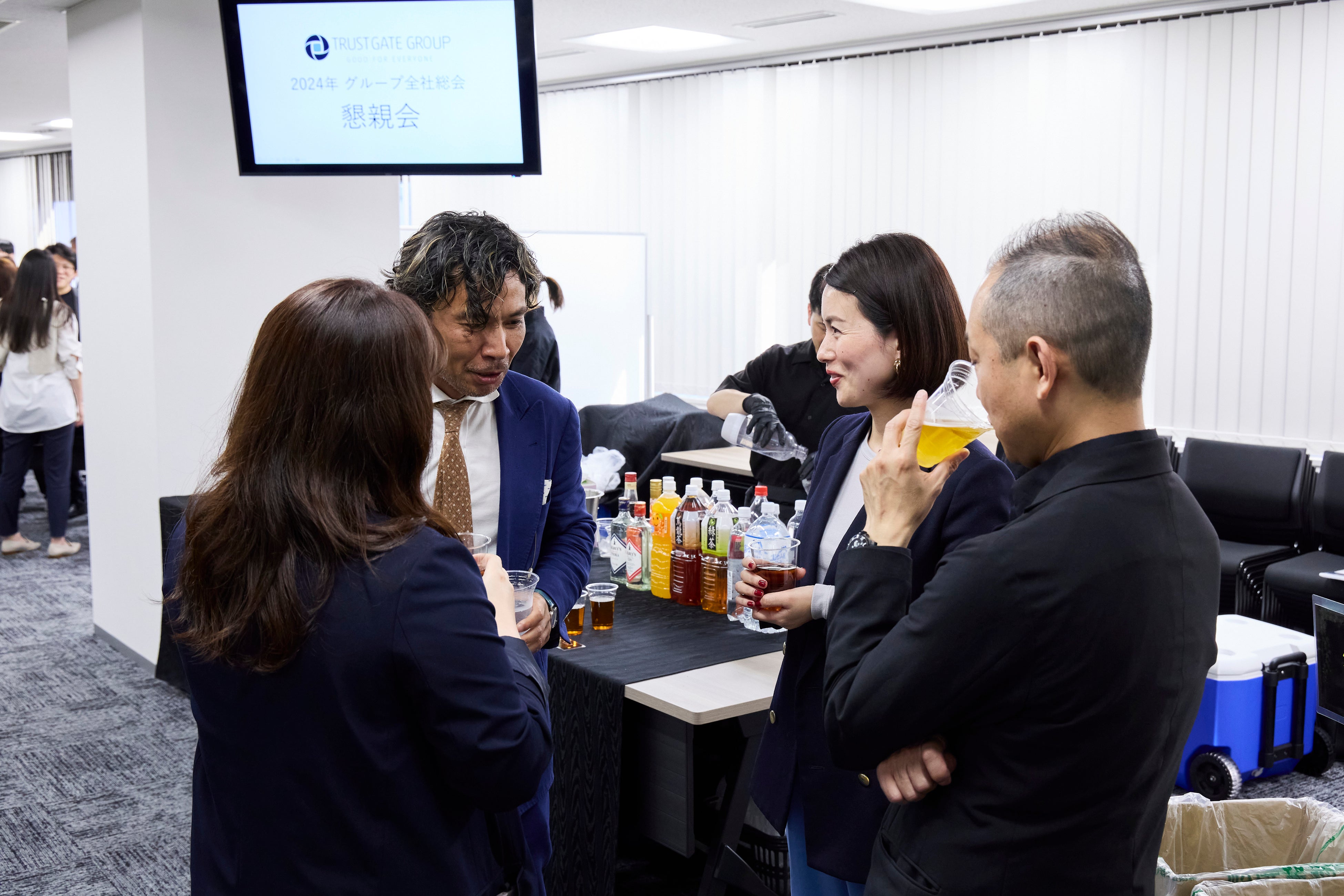 グループ間の連携を強化し、各社の事業成長だけではなくグループとしての成長を目指すことを発表した本総会。終了後には、全社員を対象とした、懇親会を開催いたしました。