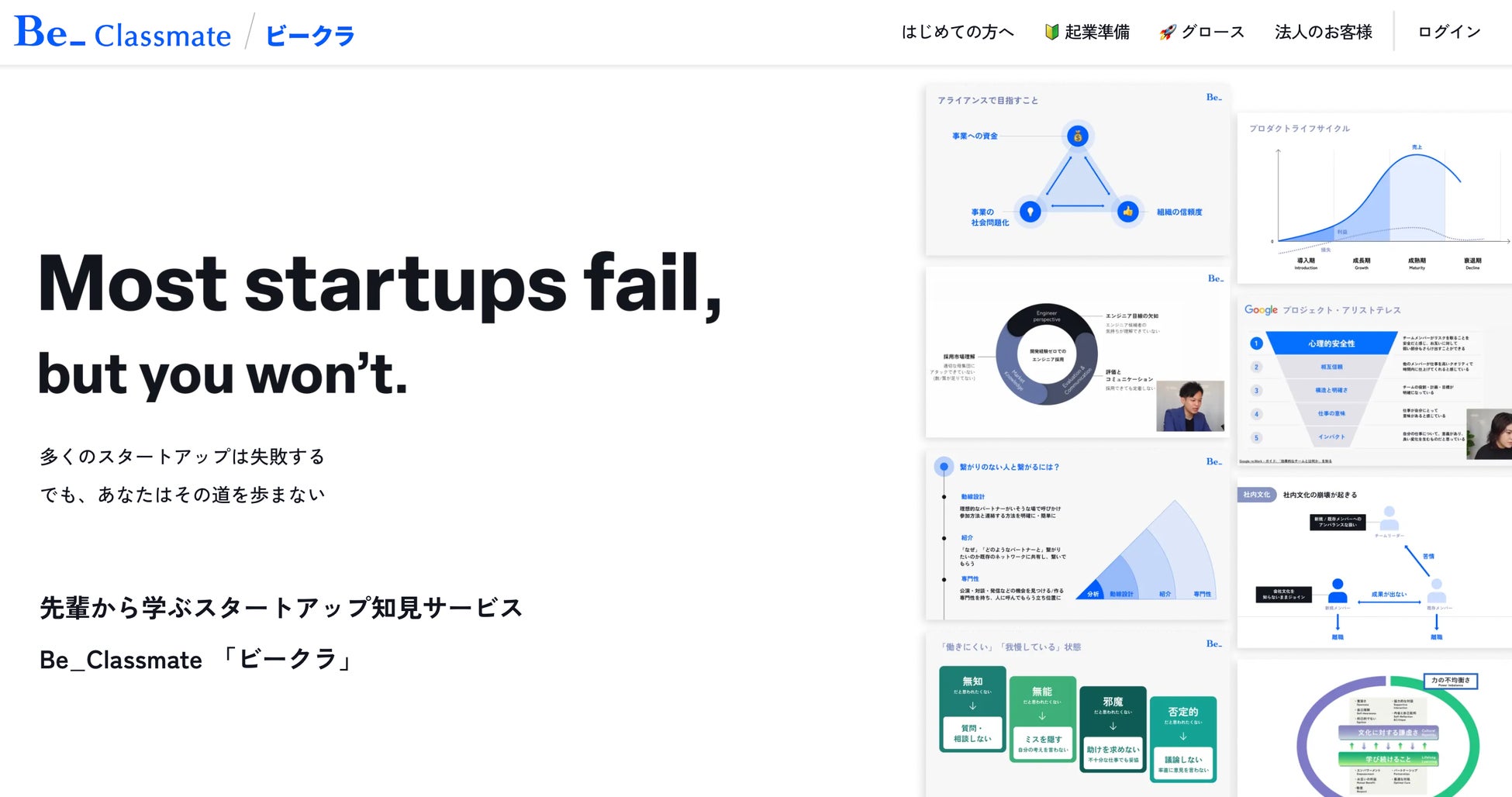 「ビークラ」は、新規事業開発者やスタートアップ推進担当者に向けた、新規事業や起業に関する実例特化の知見サービスです。