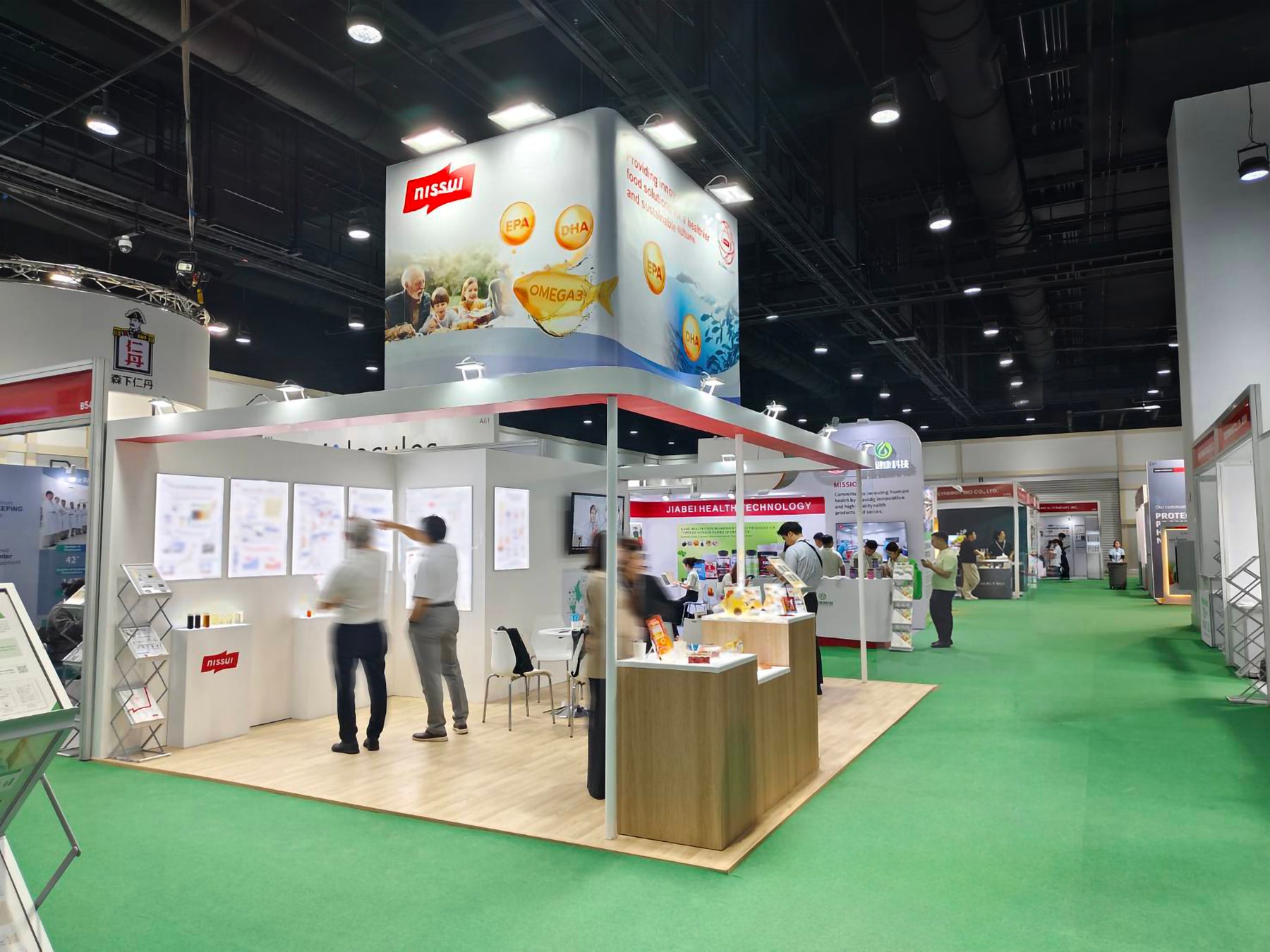 ニッスイ ファインケミカル事業部様は、グローバル市場に向けて高品質な原料・成分を発信するため出展。その魅力を最大限に伝える空間設計をアディスミューズグループが担当しました。
