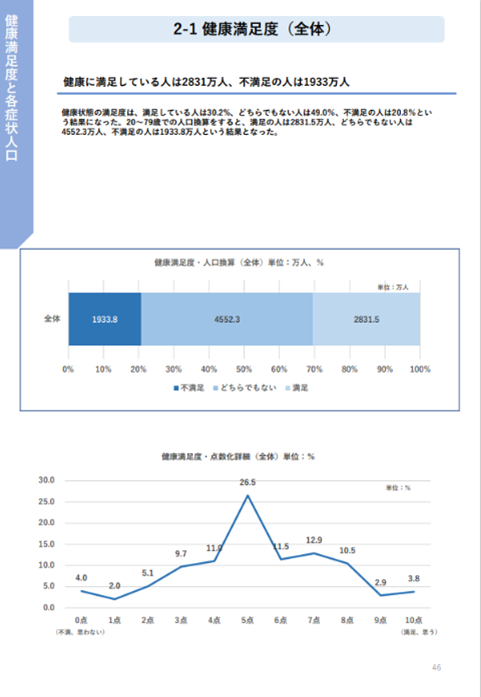 日本の疲労状況において、男女計で78.1%の人が疲れているという状況や、20~79歳の人口9317.6万人に数値を掛け合わせたると、疲れている人は7254.2万人と、元気な人2063.4万人に比べ3倍以上の人が疲れている結果が出ており、大きな社会問題となっています。
