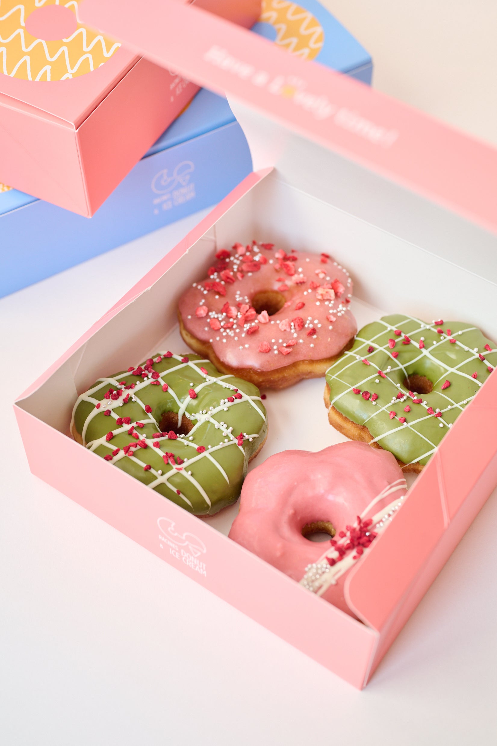 卒業や入学など新学期、新年度を祝う手土産やお花見にもぴったりの春色ドーナツが3種類登場。ギフトボックスにデコレーションできるオリジナルシールも同時販売開始!