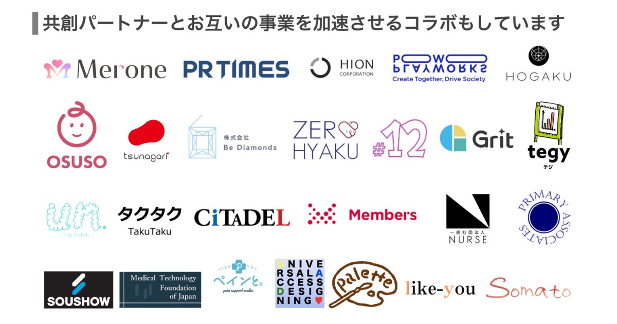 共創パートナーとは、一般社団法人Ayumiの想いや活動に賛同し、業務提携・代理店活動・インクルーシブデザイン開発における提携や人材の提供、調査協力を通じ、社会課題の解決に共に取り組む法人様のことを指します。