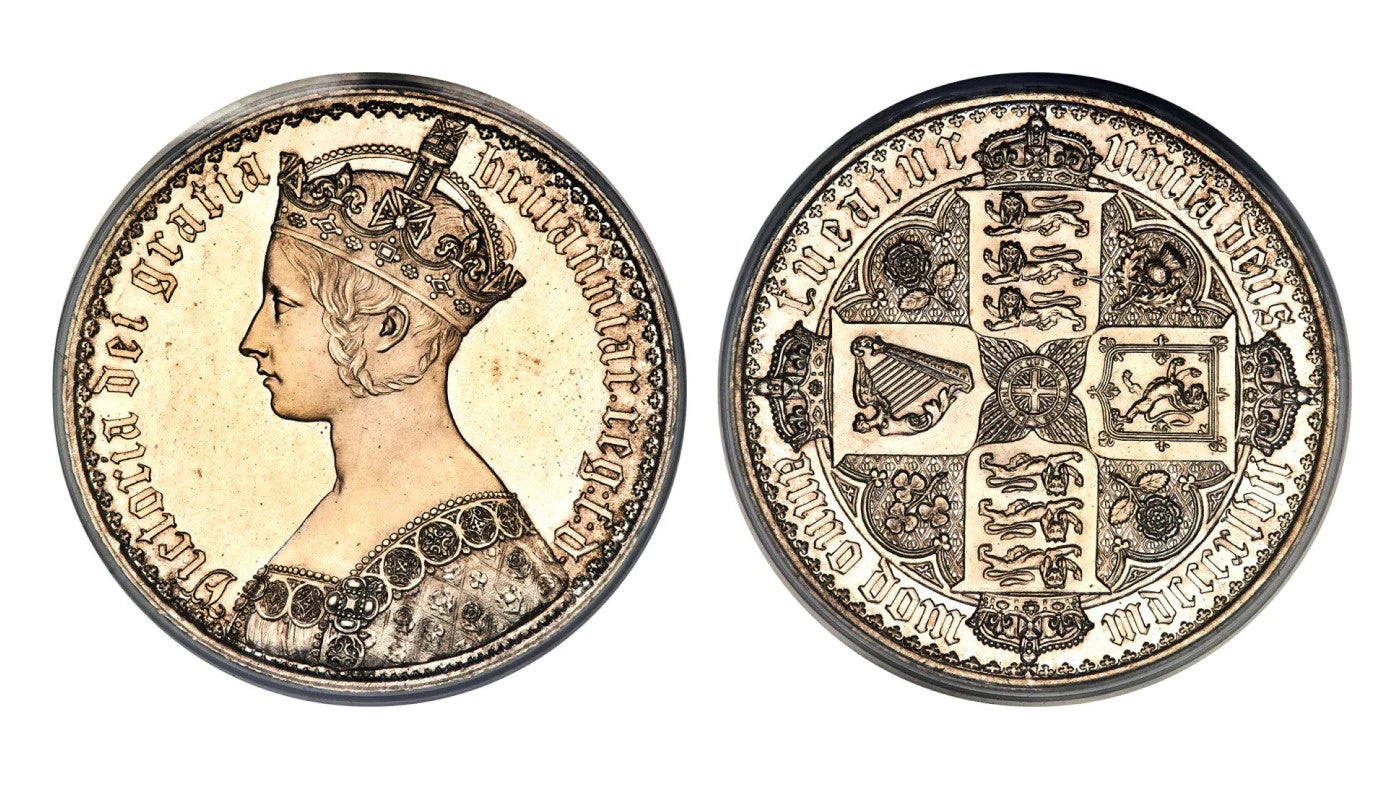 2012年の外国コインブーム以降、年々値上がりしているゴシッククラウン銀貨。1847年にヴィクトリア女王の即位10周年を記念して8,000枚発行されました。また、1853年に追加で460枚製造されています。コインのグレードによって価格はさまざまですが、200万円台から手に入るものもあります。希少性と人気を兼ね備えたコインです。