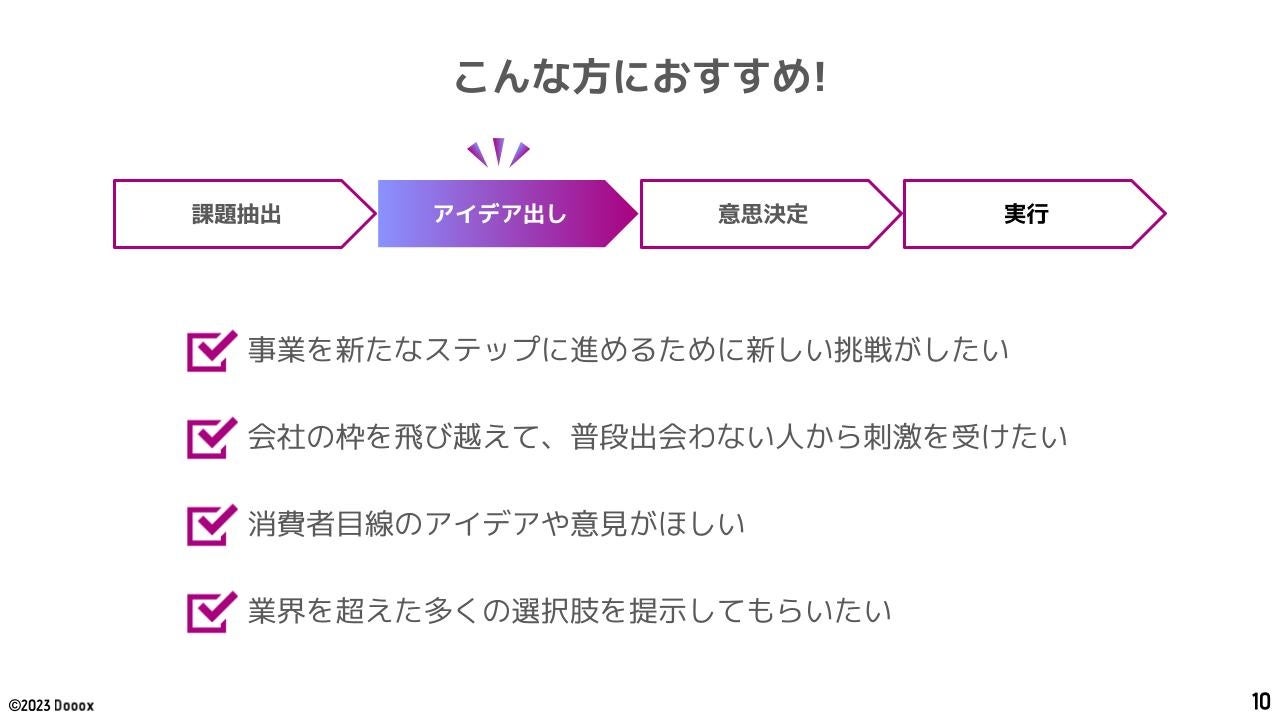 ・自社だけでは出ないような斬新なアイデアを拡げたい