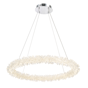 バータイプの光源をオーナメントが360度隙間なく覆います。オーナメントはクリスタルガラスと天然の水晶の2つのタイプからお選びいただけます。オーナメントを吊り下げるタイプではなく、水晶のクラスター(集合体)のように本体に直接付いたデザインです。