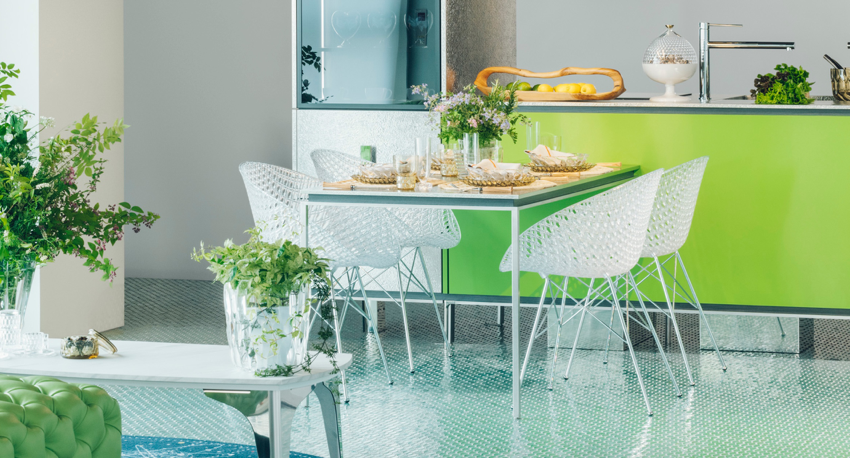 トーヨーキッチンスタイルのシステムキッチンのハイエンドモデル「iNO」に新作が登場。新しいデザイン「フレッシュグリーン」は、瑞々しいフルーツや、芽吹く新緑、新鮮なサラダを思わせる鮮やかなグリーン、自然界が作る命の色を表現しています。グリーンには生命力が溢れ出すような活動的なイメージの反面、心にやすらぎをもたらし、リラックスできる効果があると言われています。仕上げは、ヘアラインフィニッシュを施しました。