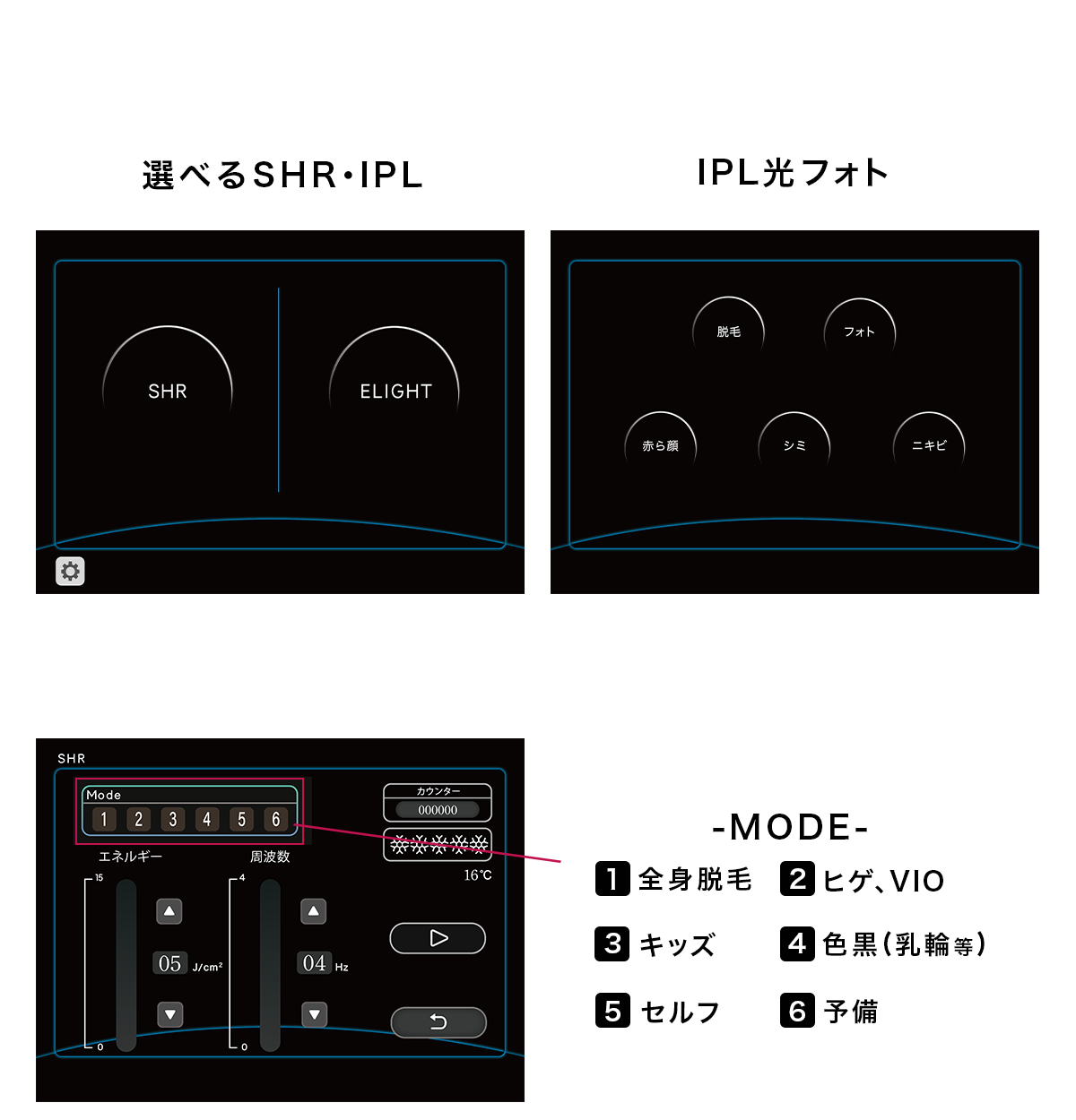 クリアスキンネオはそれぞれの肌悩みに合ったフォトフェイシャルの照射が可能だ。