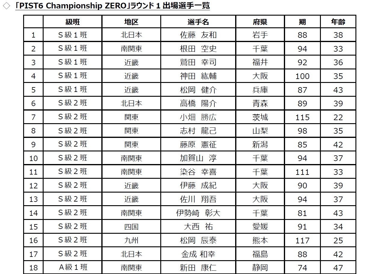 ◇「PIST6 Championship ZERO」ラウンド1出場 注目選手