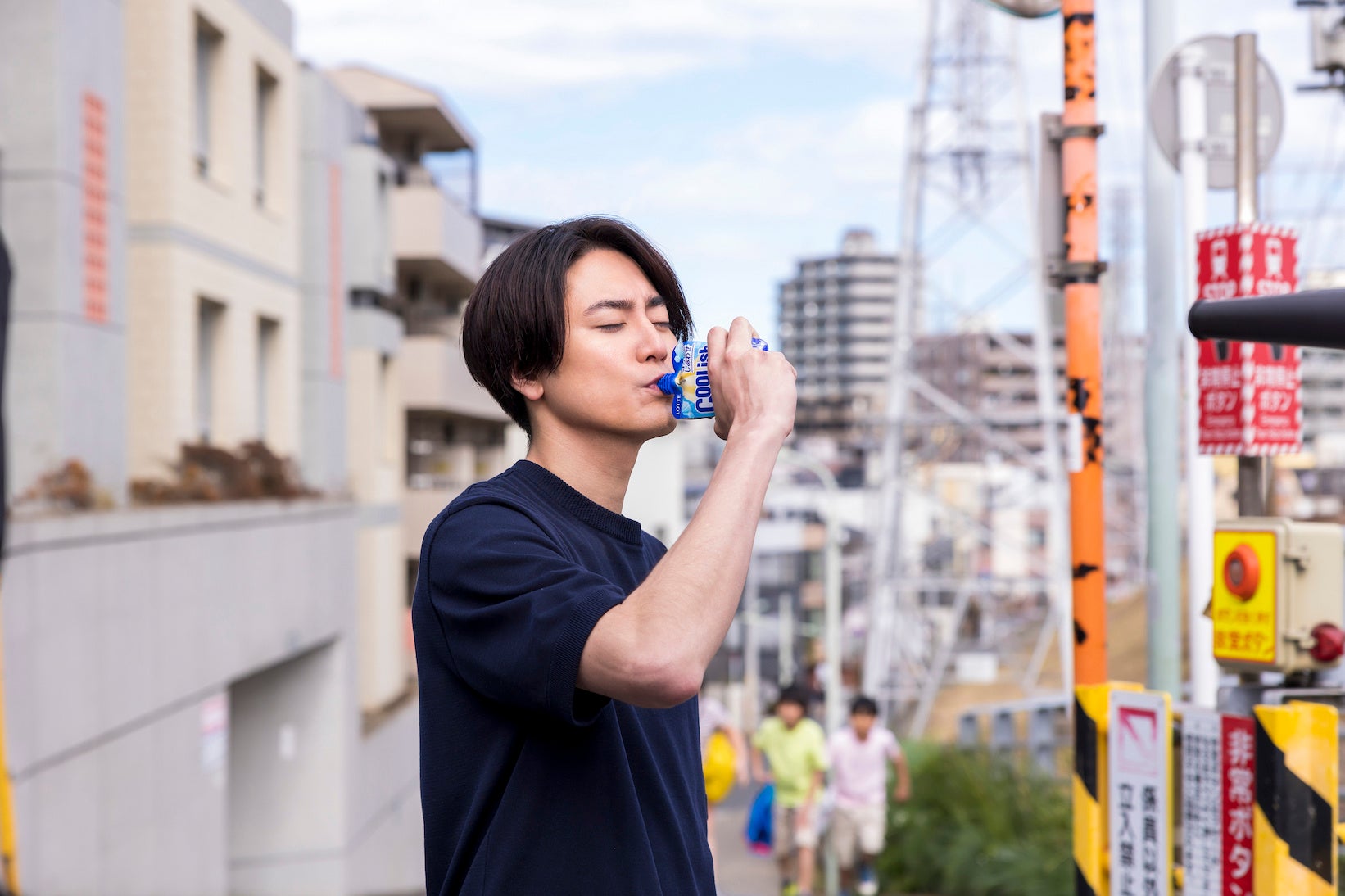 「みなさんも待ちきれず、“飲み”たくなると思います!」体も火照る暑い日、踏切で電車を待つ間宮祥太朗さんが・・・我慢できず「クーリッシュ」を飲んで“生きかえったぜ!”