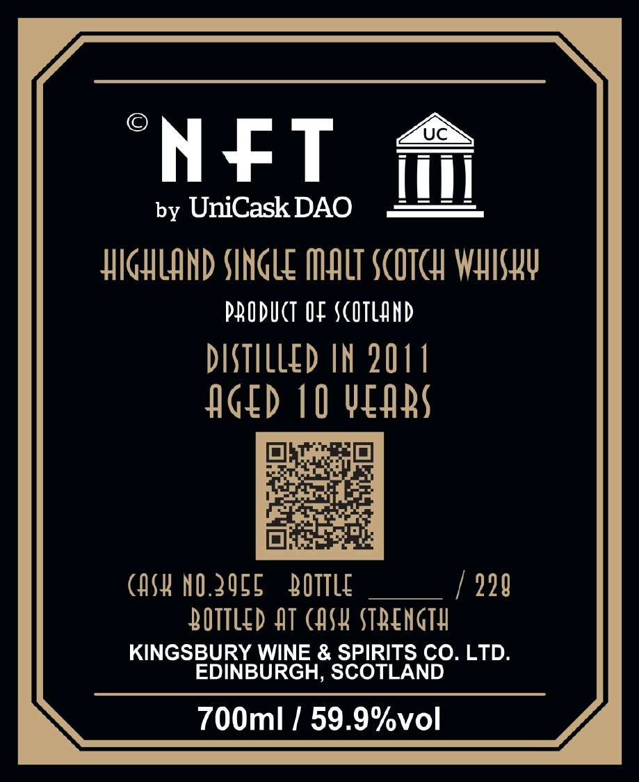 ・商品名:UniCask NFT Highland Single Malt 2011 10yo #3955
