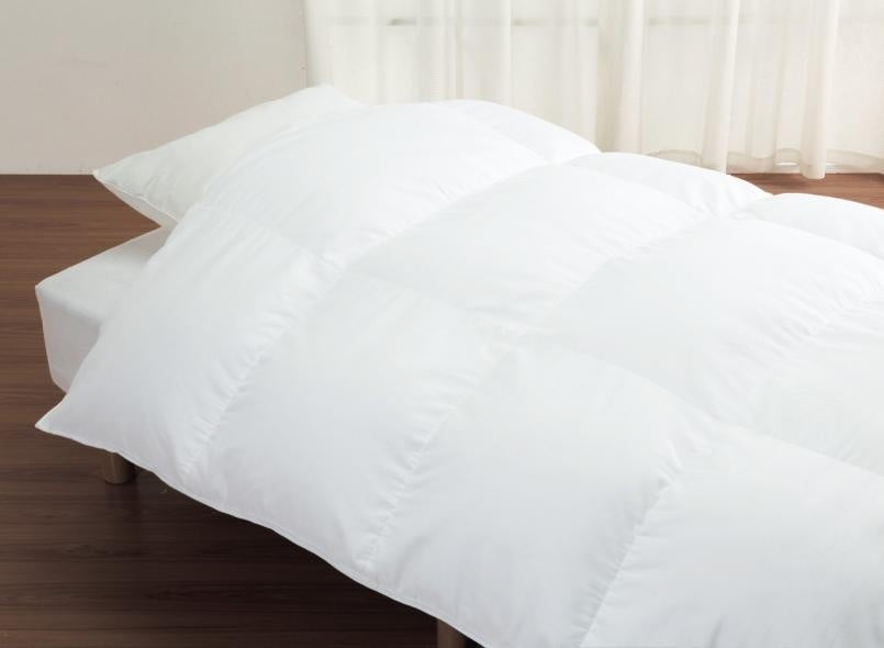 外層部に真綿を使用いているため、ふとんが身体により密着し、隙間が少なくなるため、包まれ感をより感じることができます。また、通常の羽毛ふとんより重量感があるが、その点がかえって心地よい重さとなって、睡眠によい影響を与えていると考えられています。