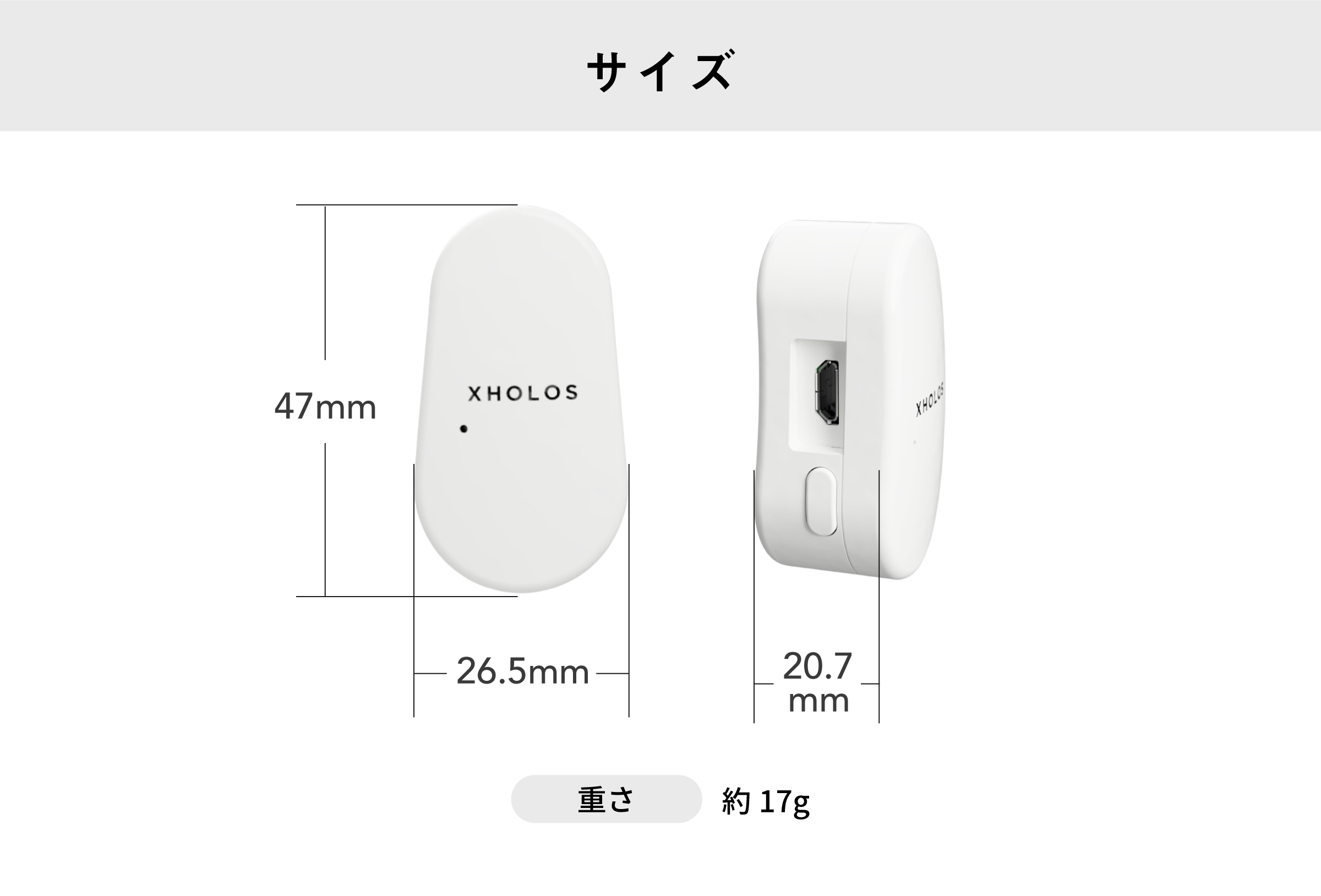 本体重量17gという軽量設計により快適な装着感を実現しました。長時間の計測においてもストレスがかからないため、より自然な状態での計測が可能となります。