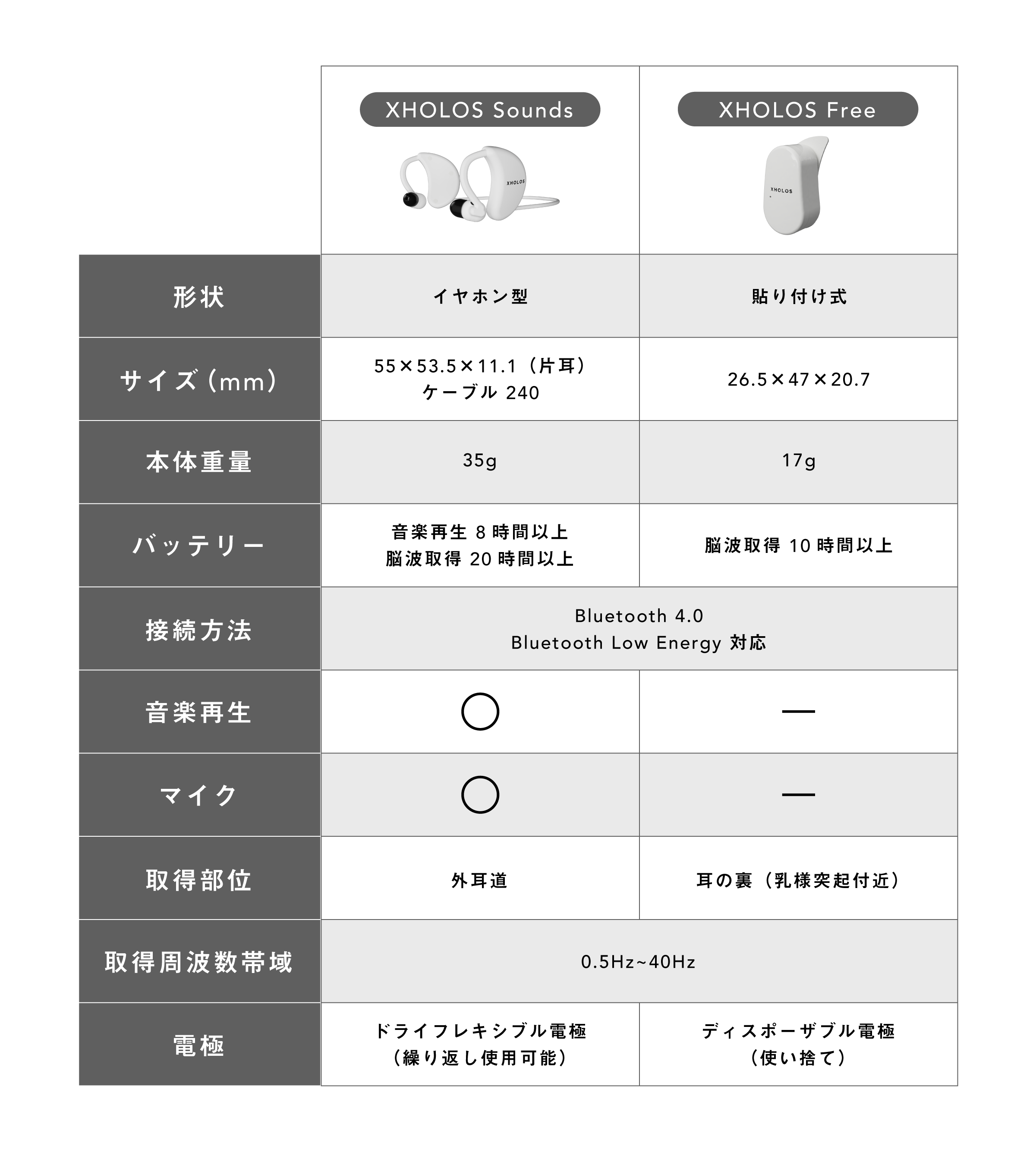 イヤホン型脳波計 XHOLOS(エクゾロス) Ear Brain Interface シリーズに、耳を塞がない貼り付け式の新モデル「XHOLOS Free」が新登場