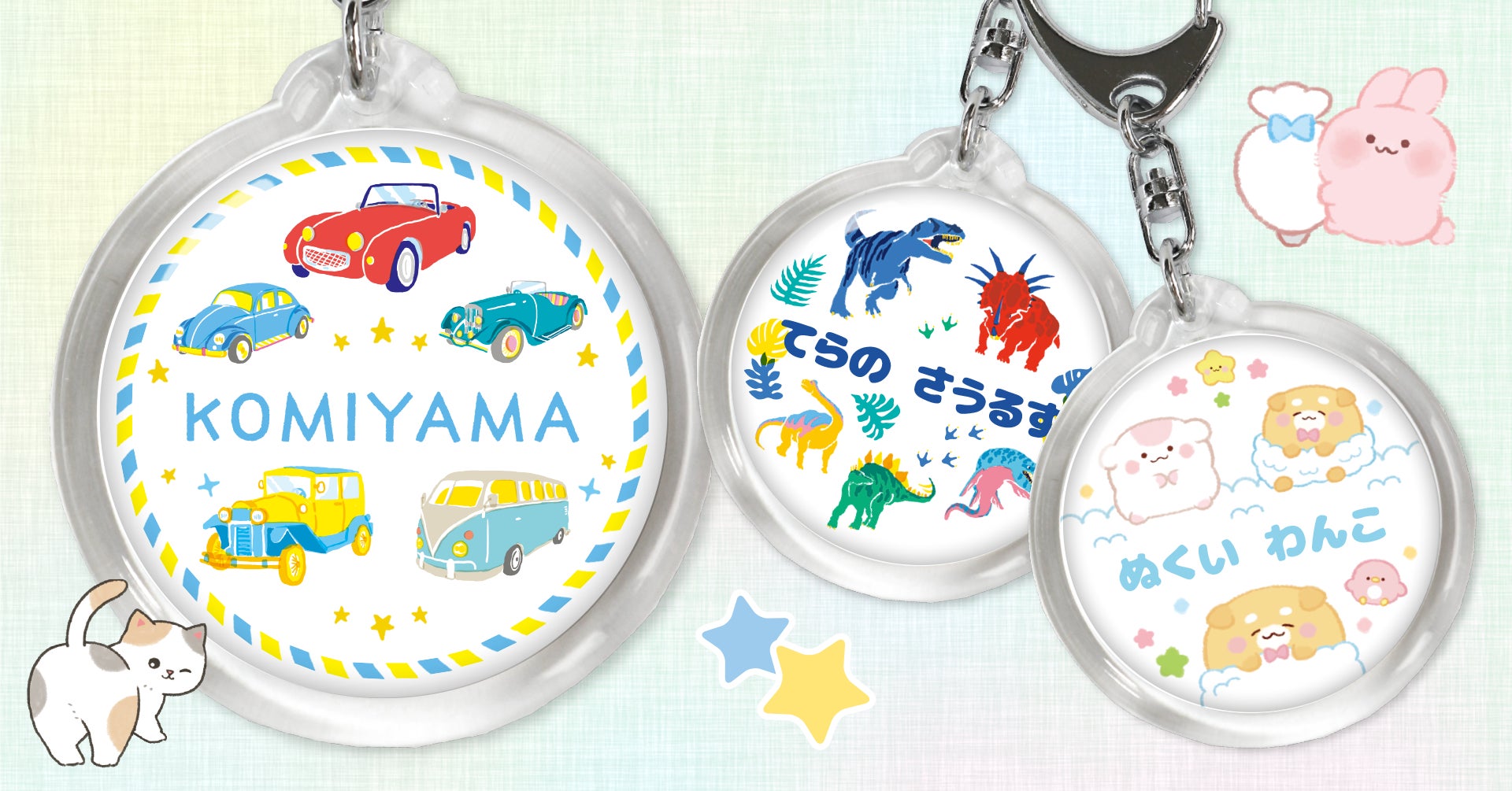 新デザイン登場!入園入学準備、名前を書きたくない持ち物につかえる「お名前キーホルダー」が33デザインに。