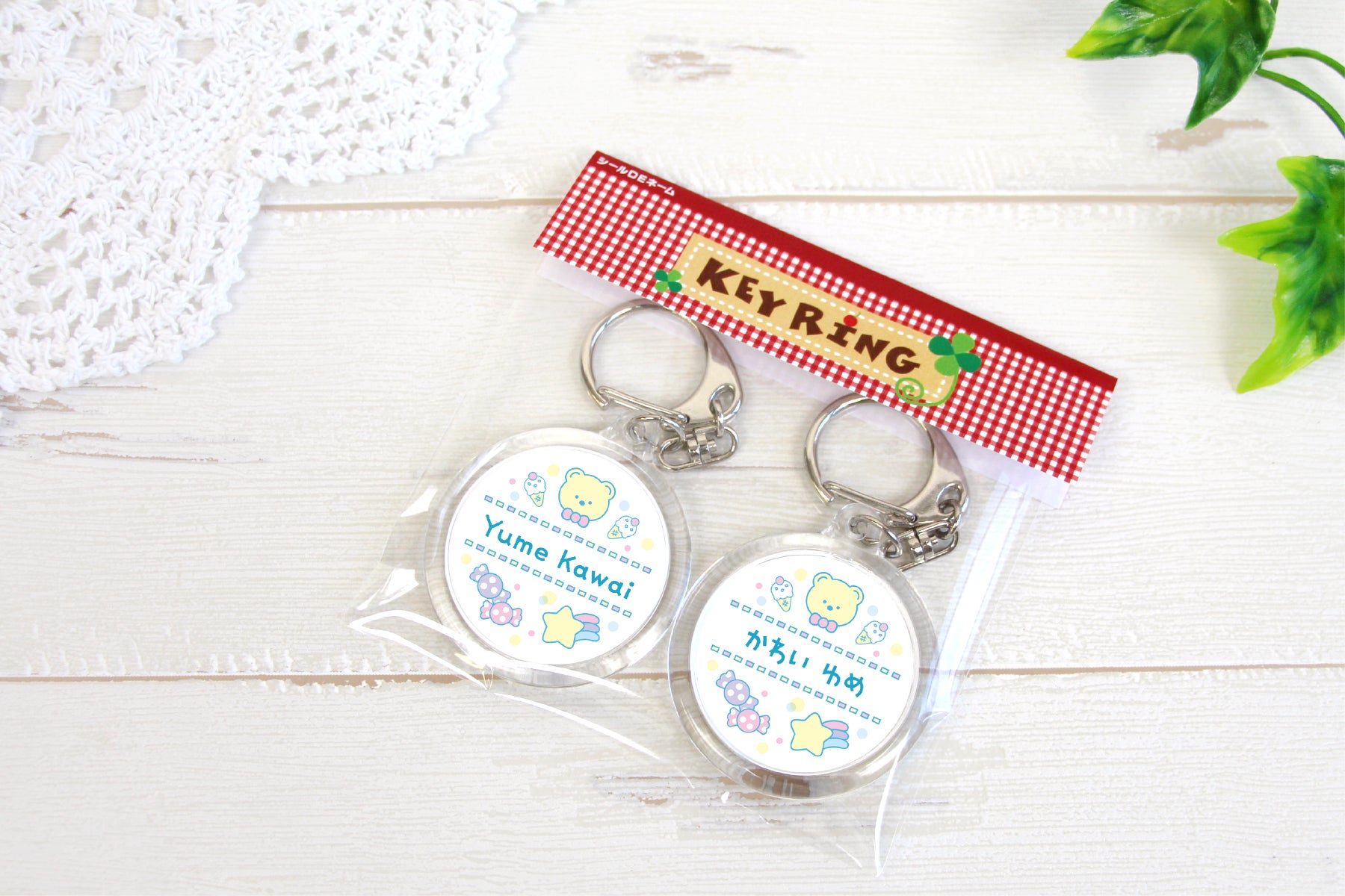 引っ越しのお別れプレゼントや、ちょっとしたぷちギフトとしても使いやすいキュートな包装つき。1つずつ名前を変えてお友達とペアで持つこともできます。