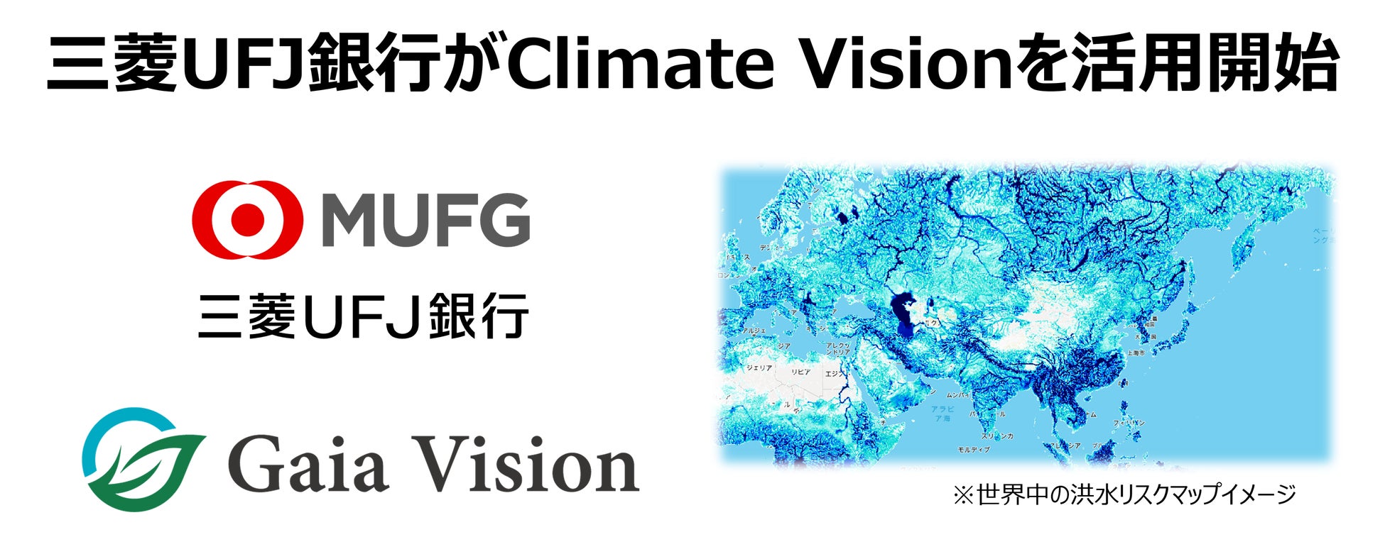 この度、Gaia Visionは、三菱UFJ銀行に「Climate Vision」の提供を開始、気候変動リスク管理やサステナビリティ情報開示の高度化に貢献してまいります。
