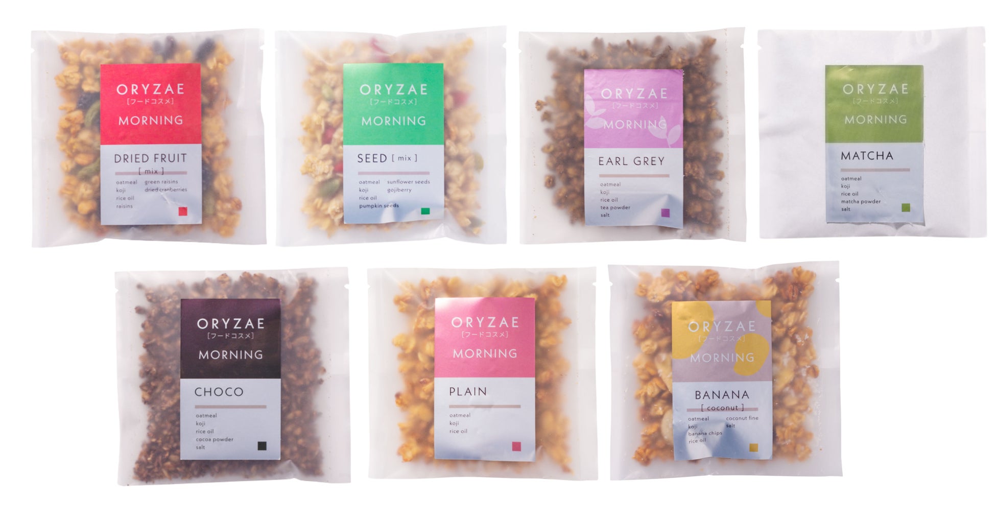 (フレーバー:プレーン / チョコ / バナナココナッツ / シード / アールグレイ / ドライフルーツ / 抹茶)