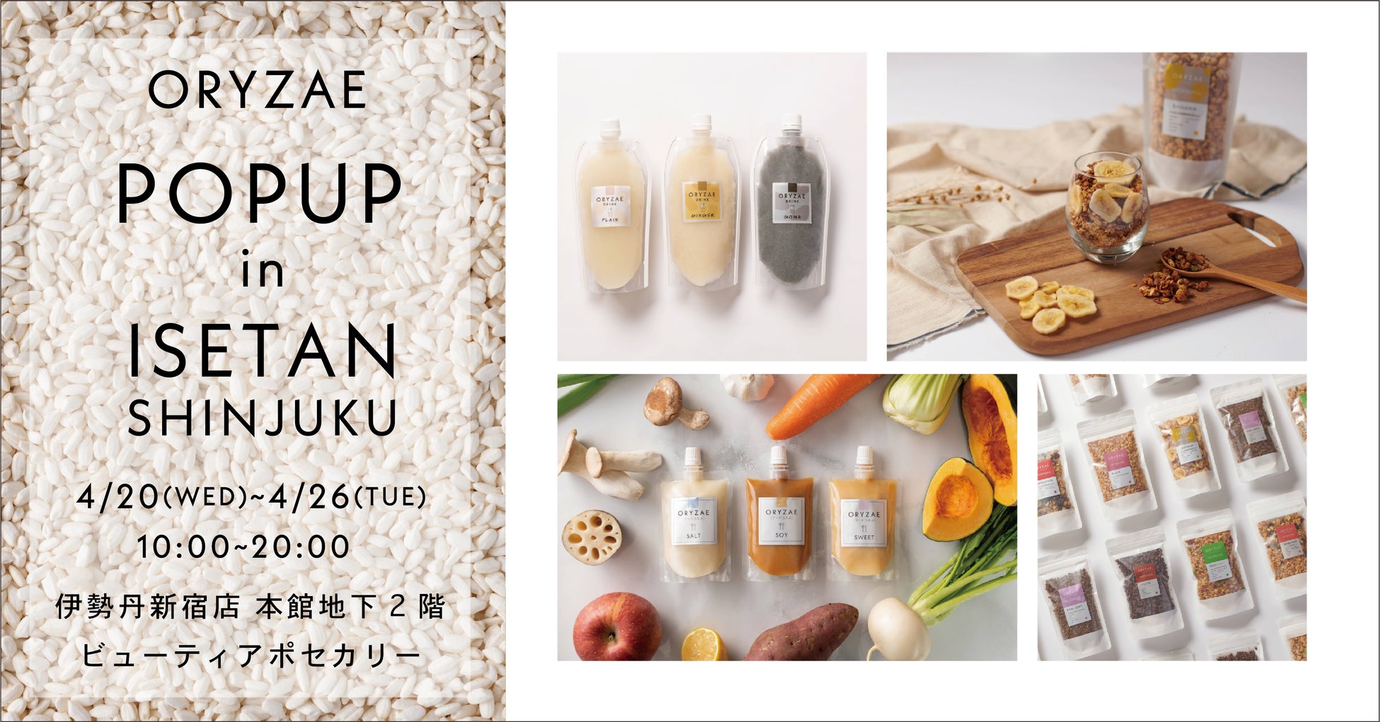 フードコスメ「ORYZAE(オリゼ)」が伊勢丹新宿店 本館地下2階 ビューティアポセカリーにて4月20日(水)からポップアップショップを開催