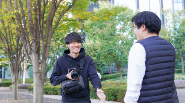 カメラマンは決まった仕事内容ではないので、自分にしかだせない味や付加価値を付けることができることにやりがいを感じます。利用者様に合わせて臨機応変にアプローチ方法を変え、撮影の精度を高められるよう研究する日々です。また、普段出会う機会がなかった様々な職種の方とお話できるというのも嬉しいです。例えばインフルエンサーやエンジニア、工場勤務の方など様々な利用者様がいらっしゃるのですが、社会人の先輩方から沢山の学びを吸収することができています。