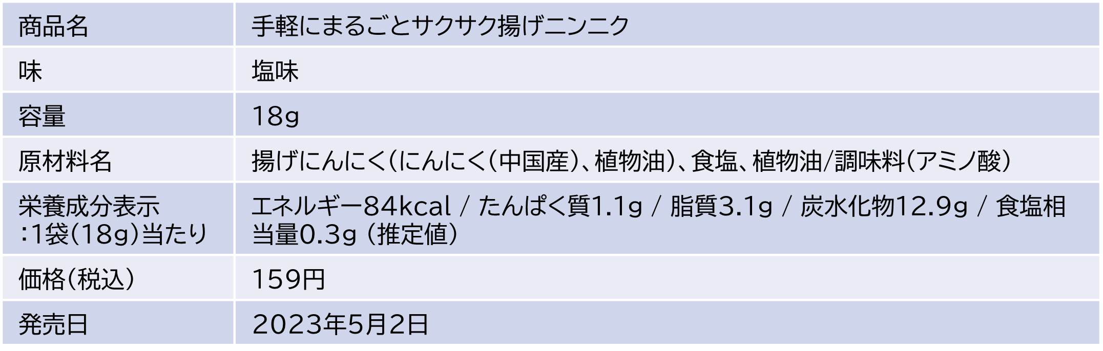 リモートワークなどの増加により、食後のニオイを気にしなくても良いという理由でニンニクを摂取し始めた方々に向けて、より気軽に、おつまみや料理にも使え、ニンニク本来のおいしさが楽しめる商品を開発しました。