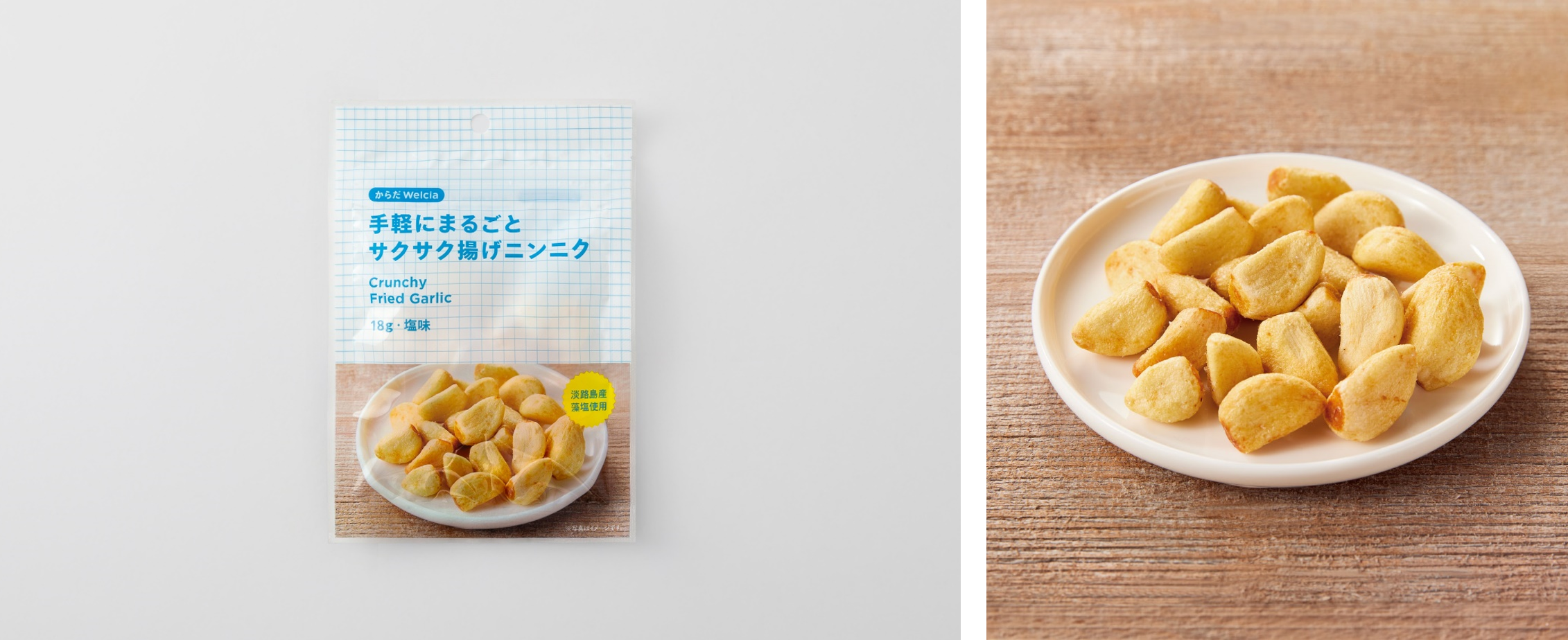 からだWelciaで人気の素材菓子シリーズに新作登場「手軽にまるごとサクサク揚げニンニク」が新発売!!