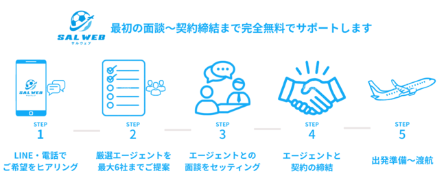 サルウェブでは選手の要望をヒアリングした上で、選手に合ったエージェントを最大6社までご提案。初回ヒアリングからエージェントとの契約締結までを一気通貫でサポートいたします。