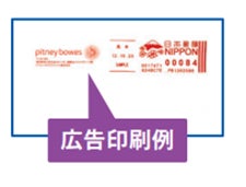 郵便料金の印影の横に会社の広告等を表示することができます。無償で使えるMyGraphics Designerをご利用いただくと、お客様がデザインされた広告画像をWebブラウザ経由でアップロードし、本機器にインストールすることが可能です。お好みの図柄、文書を印字することで封筒を広告スペースとして活用できます。