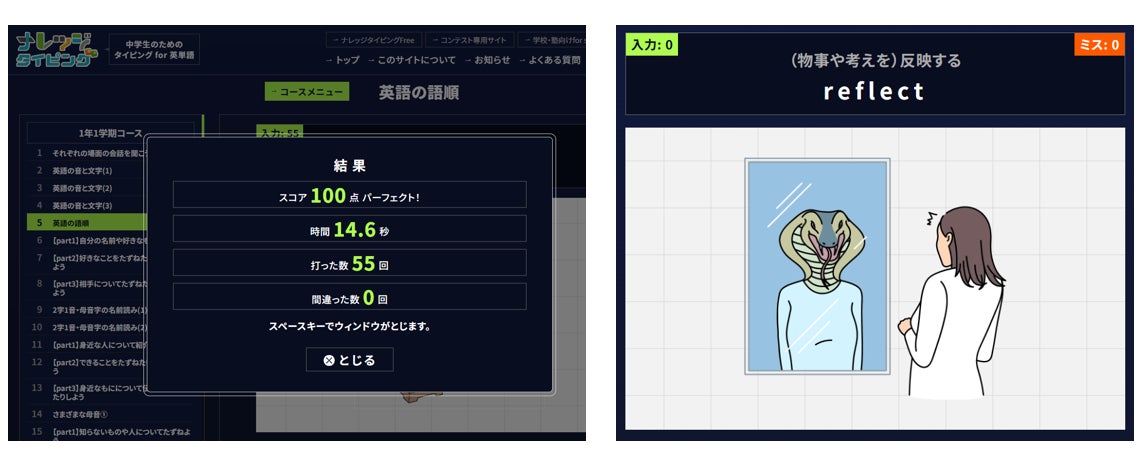 視覚・聴覚を活用して英単語をタイピング学習※今回は1学期分(全70コース、900単語)を登録済み。2・3学期分は後日順次リリース予定。