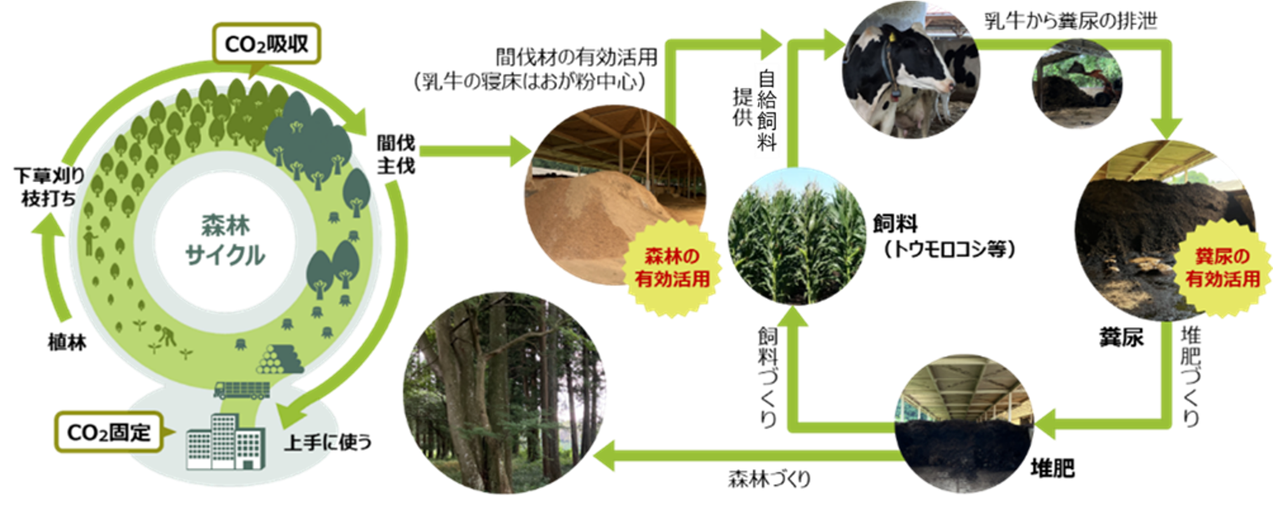 那須千本松牧場(栃木県那須塩原市、運営:ホウライ株式会社、本社:東京都中央区、代表取締役社長:寺本敏之、以下、ホウライ)は、2024年4月17日に株式会社三井住友フィナンシャルグループ(執行役社長グループCEO:中島 達、以下、SMBCグループ)と、循環型の酪農・林業における協業を目的とした覚書を締結し、「循環型酪農」の高度化と「循環型林業(森林エコシステム)」の構築に向けた協業を進めてまいります。