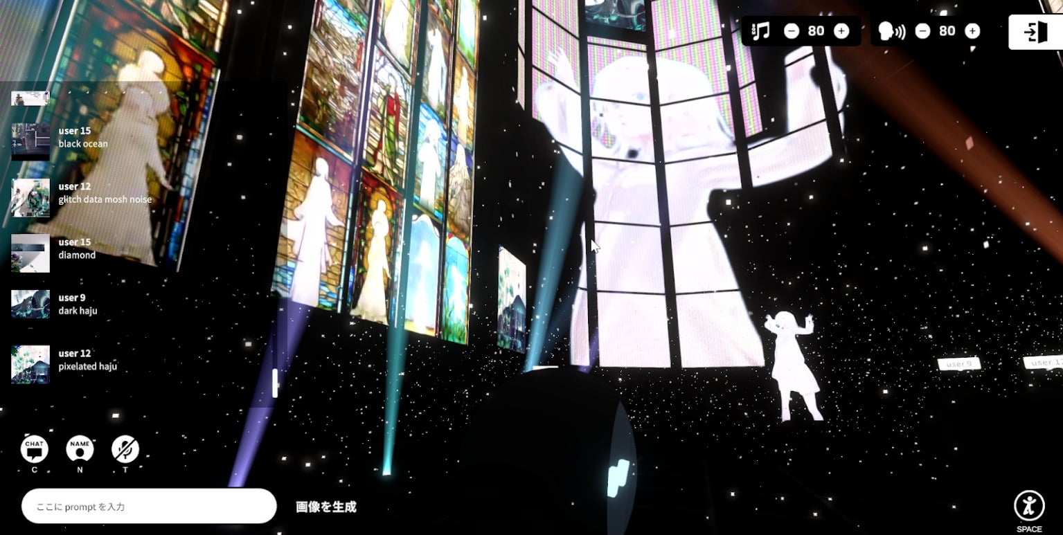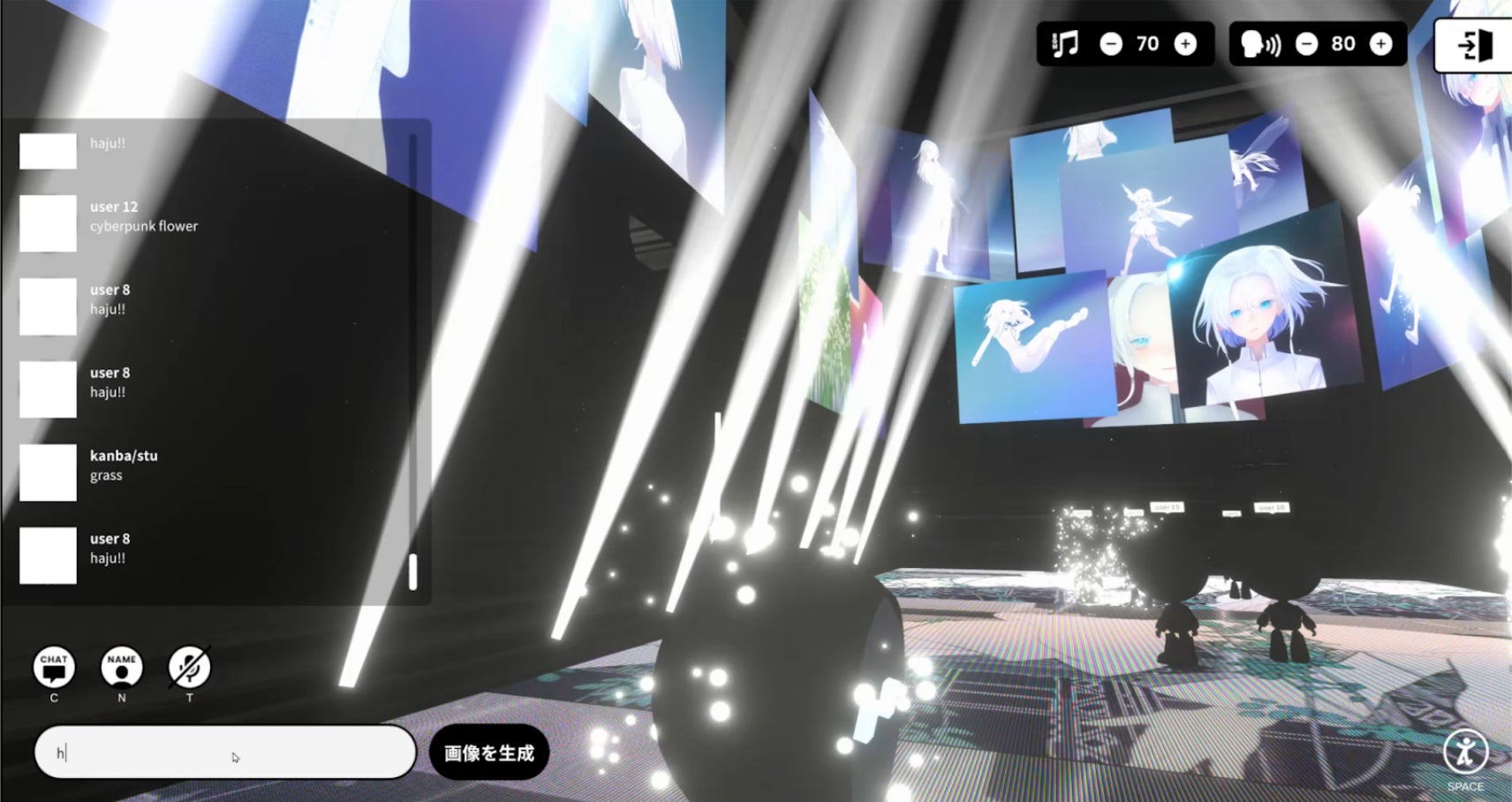 なお、今回はプロトタイプの試験運用第一弾として、Vシンガーのhaju:harmonicsと共創型バーチャルライブを実施。参加者が入力したプロンプトから生成される画像が、リアルタイムにライブ演出として投影されるなど、ライブ参加者がより楽しめる参加型のライブ演出を実現し、ツールの有効性を確認しました。