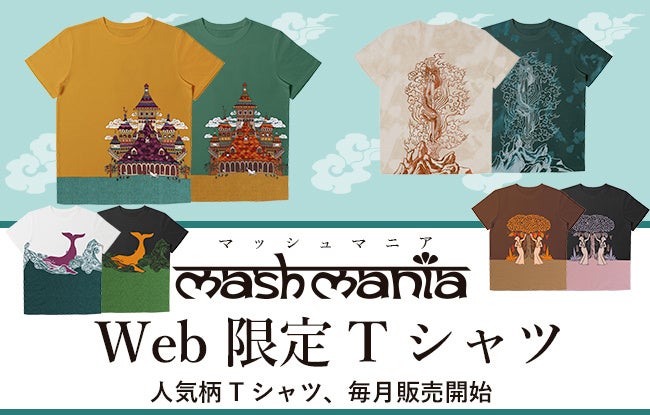 4月はmash maniaで人気の4柄・2配色と、3月に人気だった2柄・2配色の、計12柄をプリントしたTシャツを発売します!