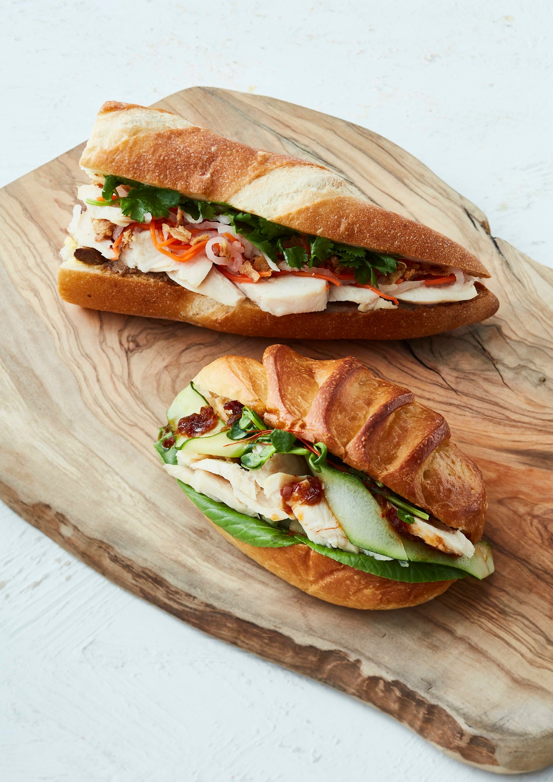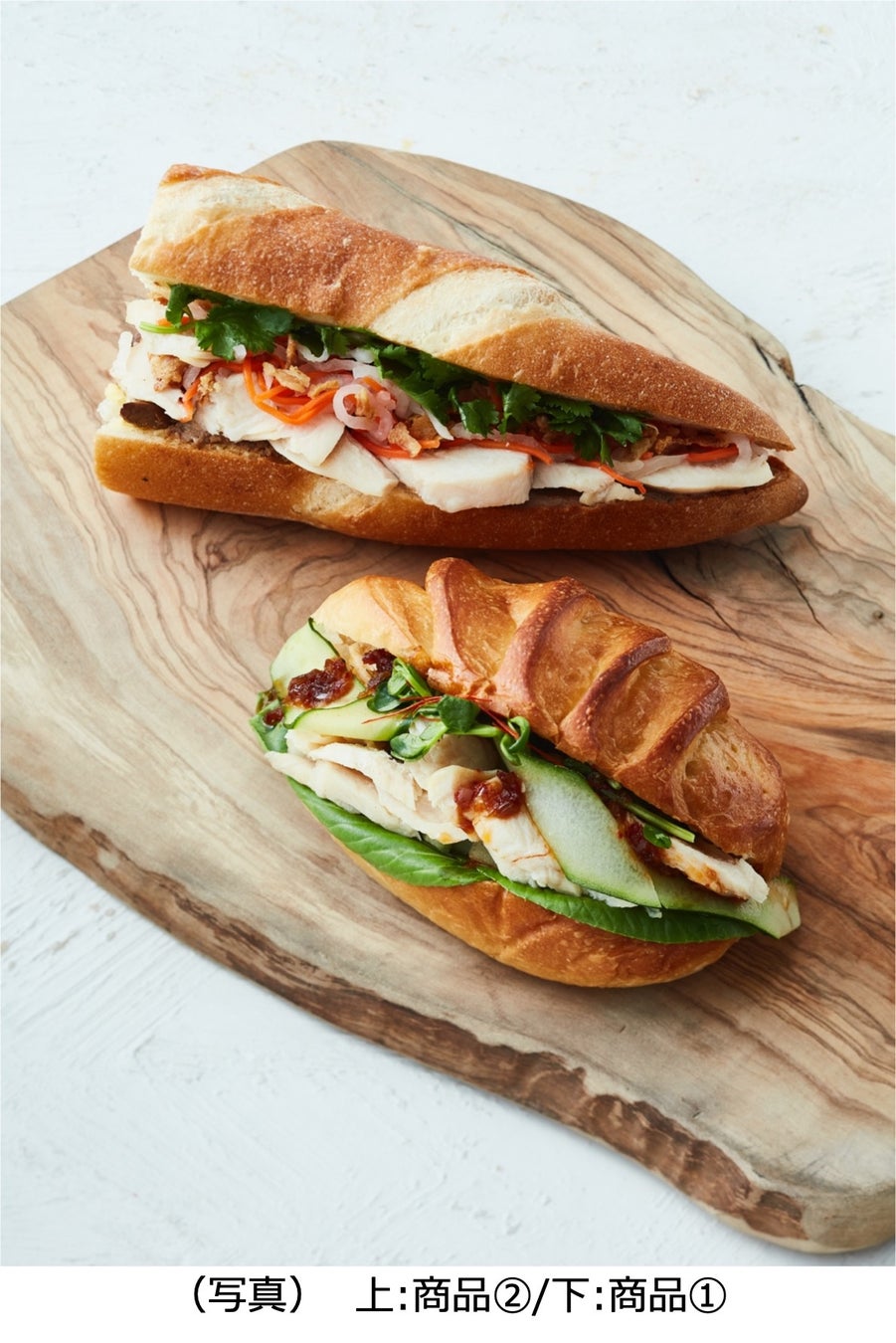 旨みが強くジューシーさが特長の森林どりの蒸し鶏を使用し、シャキシャキでみずみずしい生のチンゲン菜、豆苗、きゅうりの緑野菜をたっぷりと合わせました。ソースは、甘みと旨味が特徴の韓国唐辛子、長葱、にんにくや生姜で旨辛に仕上げた自家製ソースです。パンは、やわらかくミルキーな味わいのヴィエノワを使い、歯切れとくちどけの良い、お肉もお野菜もたっぷり楽しめる、夏にぴったりのピリ辛サンドイッチに仕上げています。