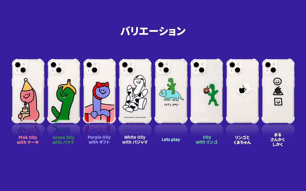 バリエーション :Pink Olly with ケーキ、Green Olly with バナナ、Purple Olly with ギフト