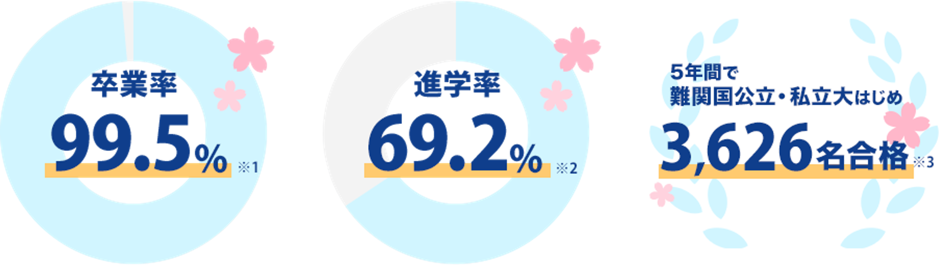 ※3 過去5年間(2018年~2022年)の大学・短大・専門職大学合格者の累計実績(トライ式高等学院のみ)