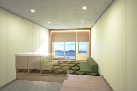 ■専用テラス(足湯&床窓バルコニー「海のテラス」、フライングブリッジ「光のテラス」、フォワードデッキ「風のテラス」)