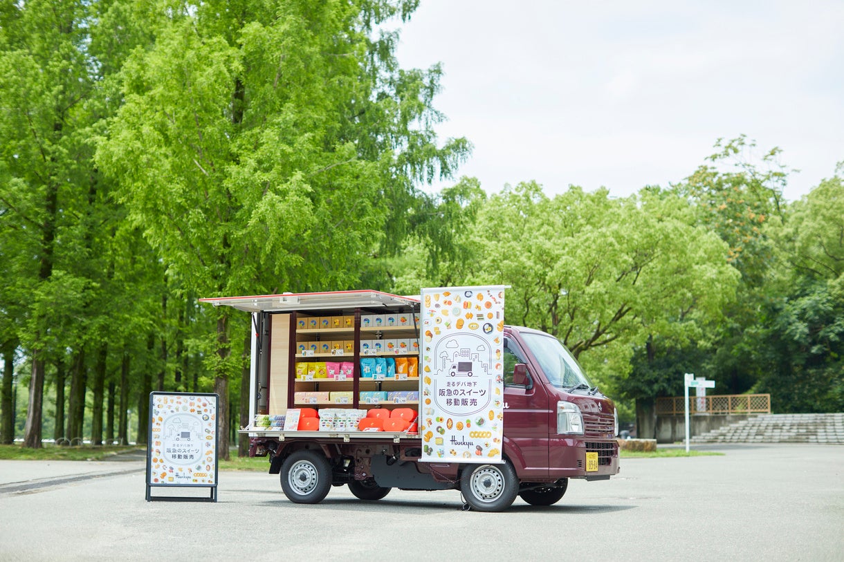 走るデパ地下とは、阪急うめだ本店で人気の和洋菓子を積んだ移動販売車が、様々な街や施設に出店するサービスです。泉佐野「さのみなと団地」敷地内に出張していただき、入居者の方に向けて移動販売を行なっていただきます。