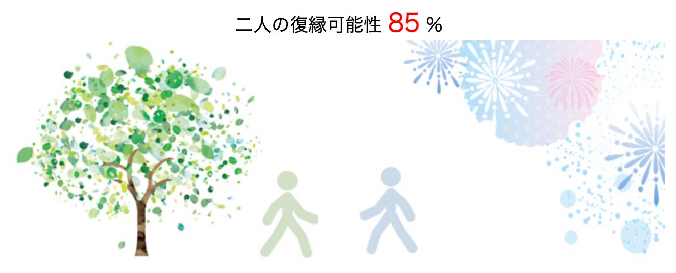 利用者は、自身と相手の生年月日を選択することで無料で占うことができ、東洋から伝わる占術のなかでとくに信頼度の高いと言われる『四柱推命』を用いて導き出された性格相性診断において『復縁可能性』をパーセンテージとして算出。復縁についての解説やその後の結末、アドバイスなどを受けることができます。
