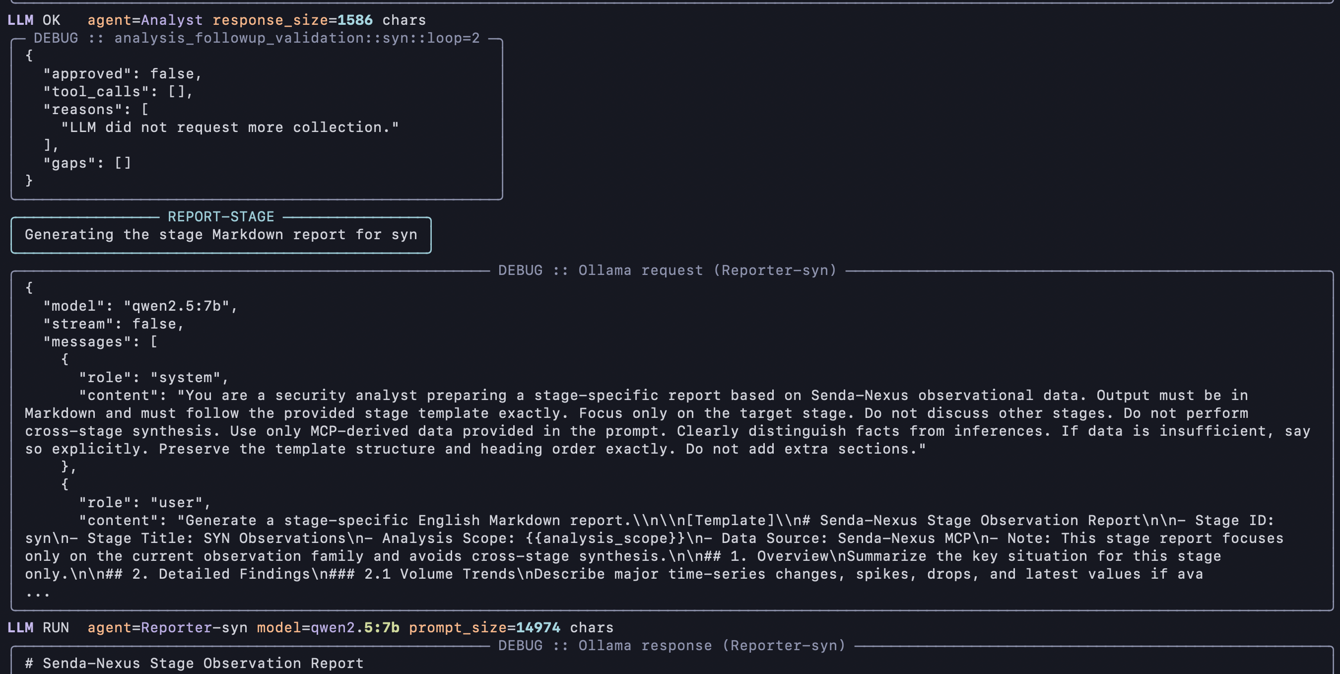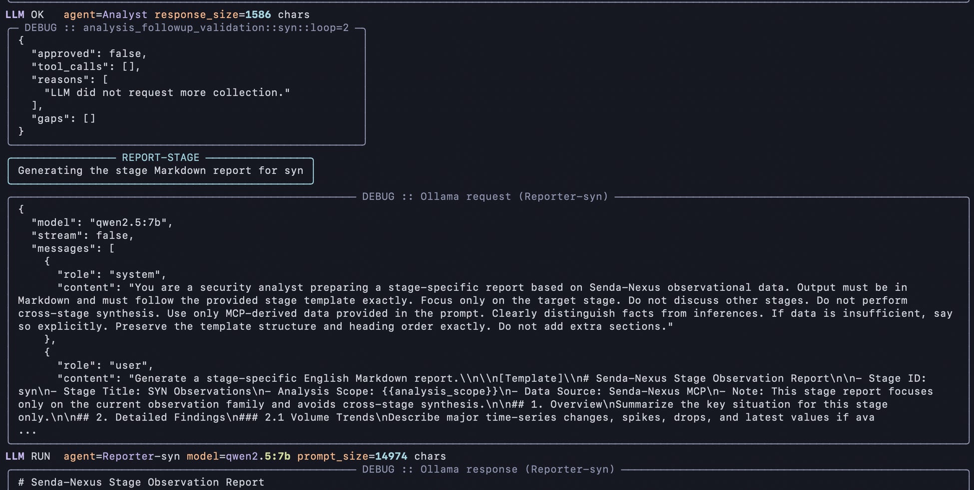 Planner、Collector、Analyst、Reporterなど役割を分離した構成により、情報収集から分析、レポート生成までを一連の流れとして実行できます。また、どのツールを利用し、どのような判断を行ったかの履歴を保持しやすく、説明可能性の高い運用を支援します。