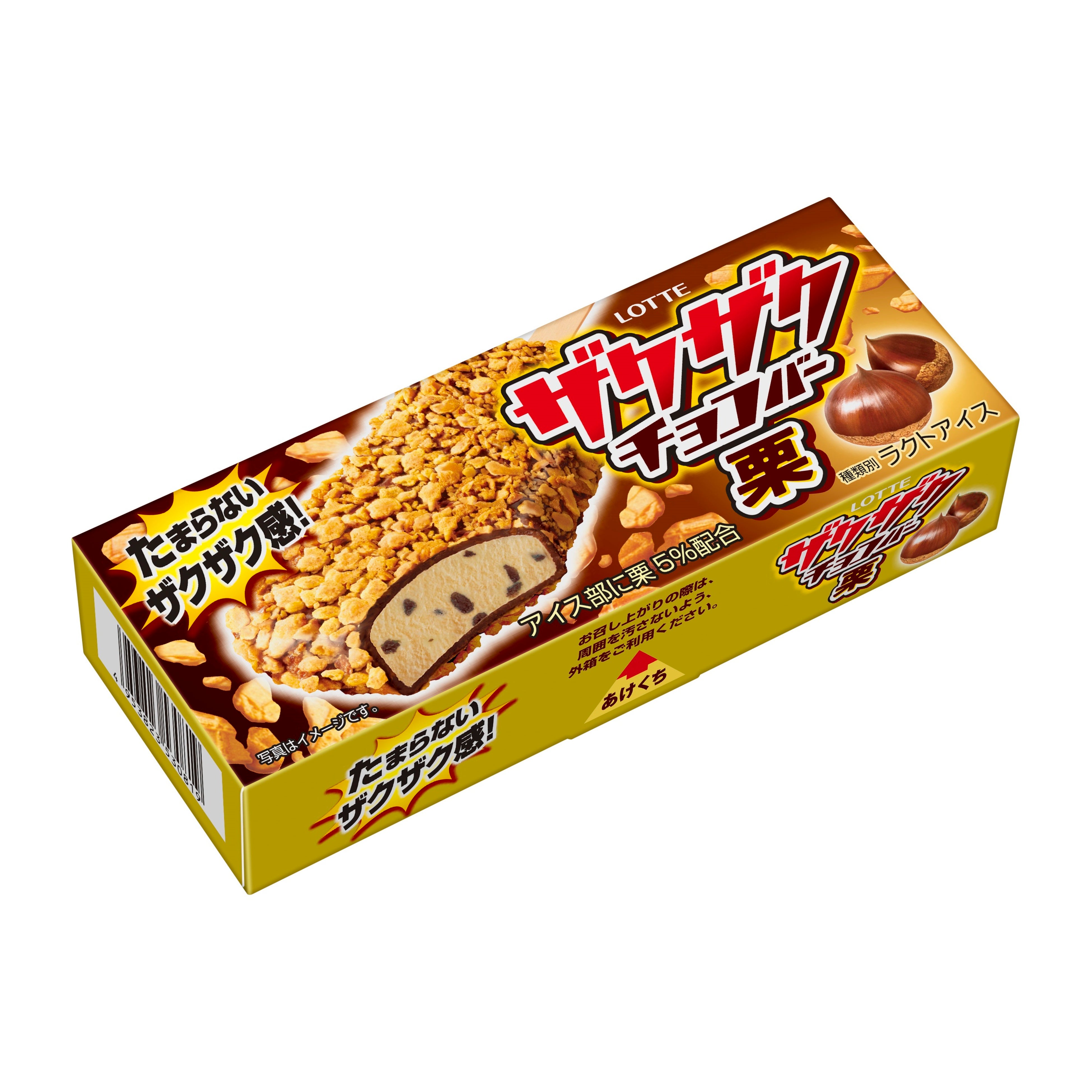 【内容】こぼれるほどたっぷりついたザクザククランチでコーティングされたアイスバー。アイス部分にマロンペーストを配合し、チョコと栗のコンビと、ザクザク食感が楽しい商品です。