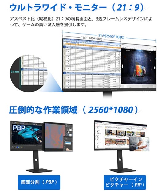 在宅勤務の場合が多い方はInnocn社『WF26-PRO』の購入をご検討ください。ウルトラワイドモニターとして21:9横長いアスペクト比を持ち、仕事効率を倍アップさせる!