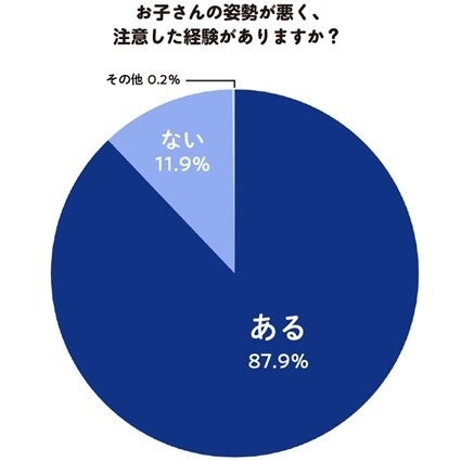 子どもの姿勢を注意した経験がある保護者は、87.9%となり、多くの家庭で子どもの悪い姿勢を注意していることがわかりました。
