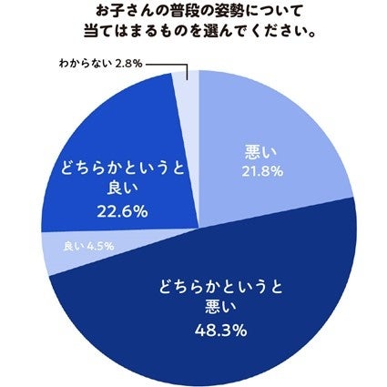 「姿勢は悪い」「姿勢はどちらかというと悪い」を合わせると、全体の70.1%の保護者が子どもの姿勢が悪いと回答。