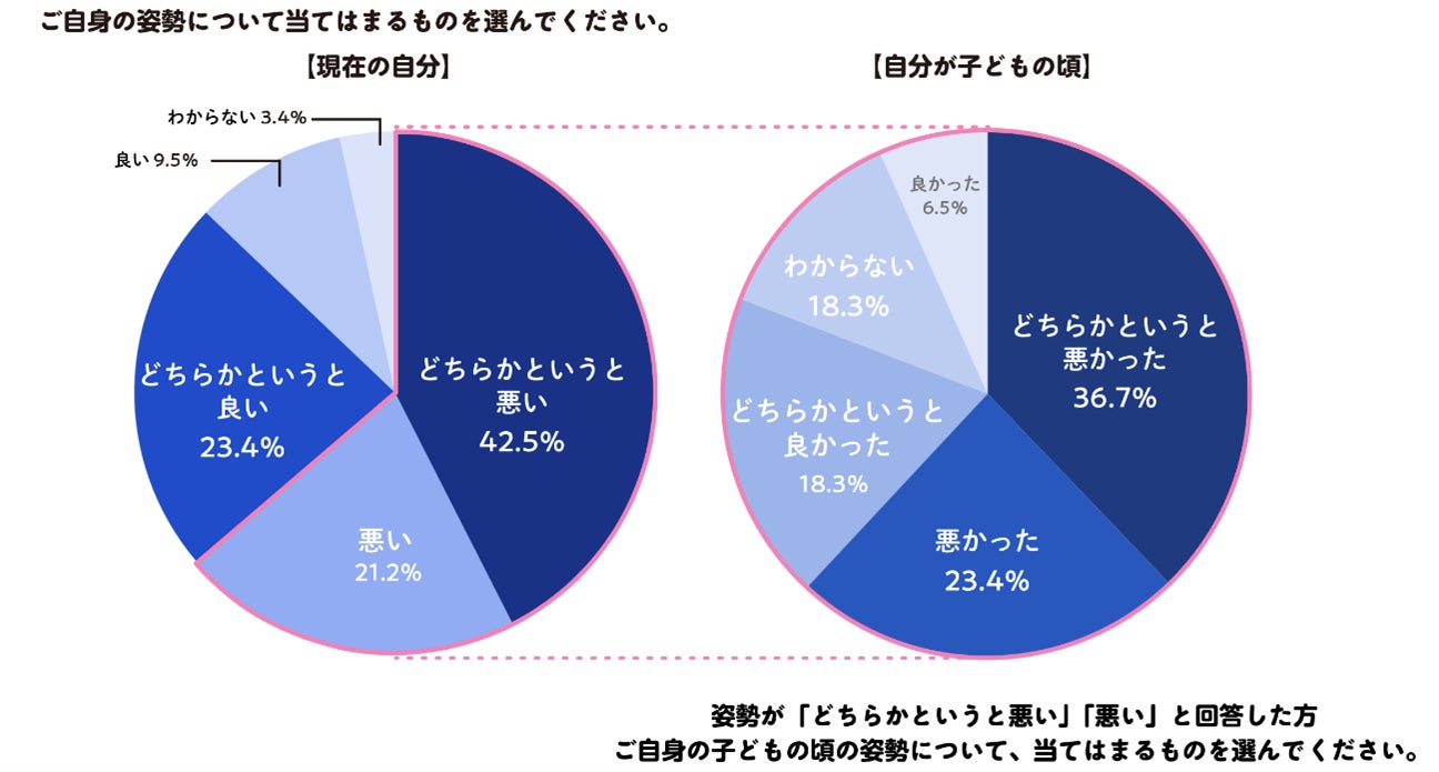 「子どもの姿勢を改善したい」保護者は9割。自分も姿勢が悪いと回答した保護者のうち7割は「子どもの頃から姿勢が悪かった」と回答。早いうちから姿勢改善にアプローチすることが大切!