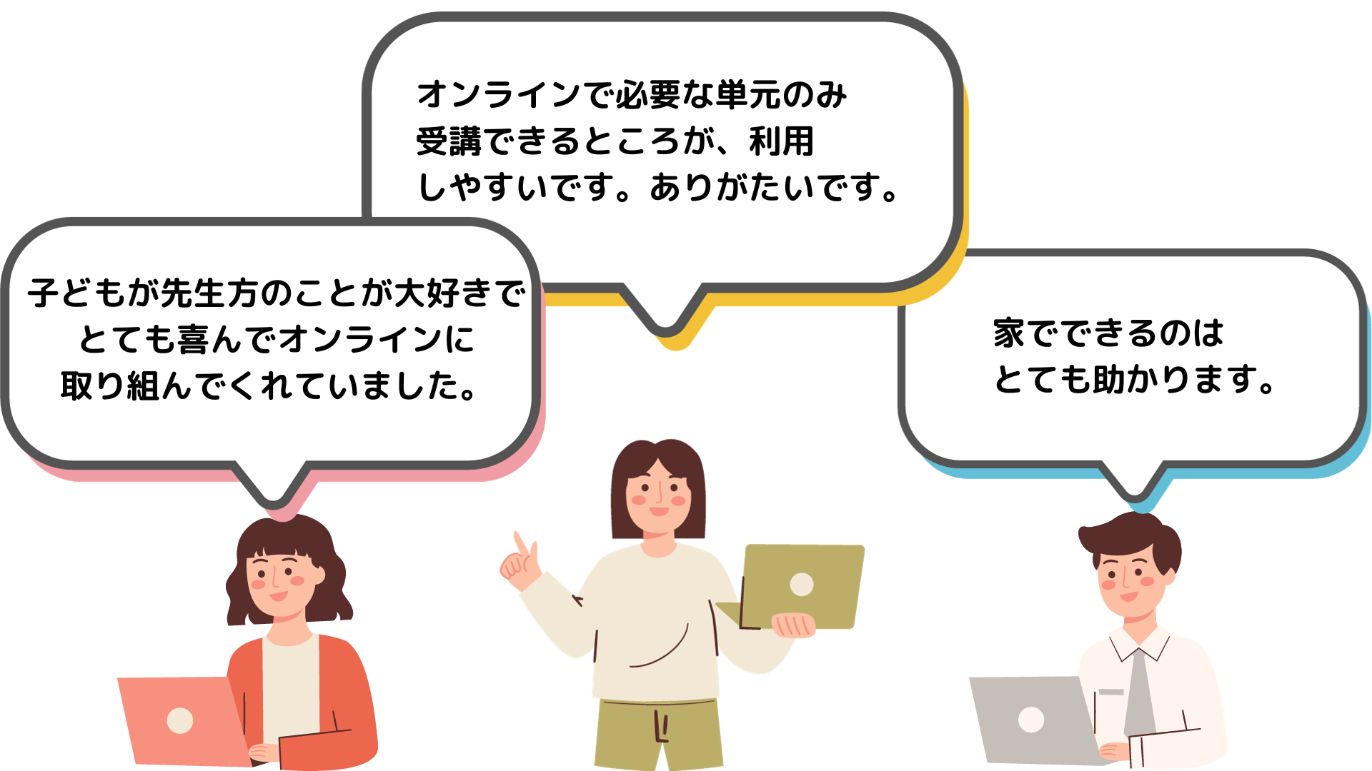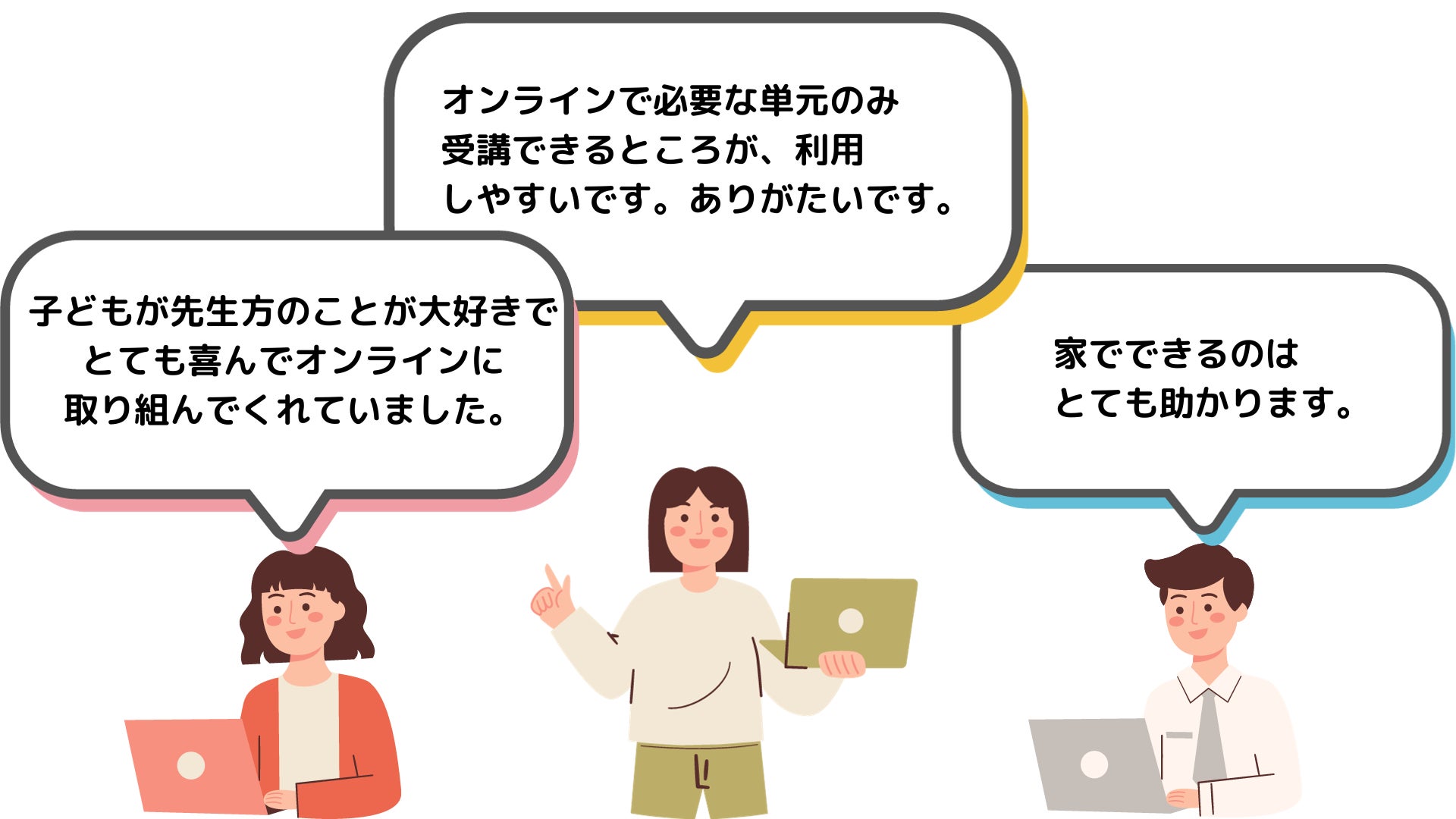 ユーザーの皆さまからは、「UrSTUDX(ユアスタディクス)が登録料が無料で、単発クラスを受けた場合のみ料金が発生するシステムが利用しやすい。」とのコメントや「幼児教室のオンラインクラスを子どもが喜んで取り組んでくれました。」など、”利便性の高さ”や”クラスの内容の良さ”に関するコメントを多くいただきました。
