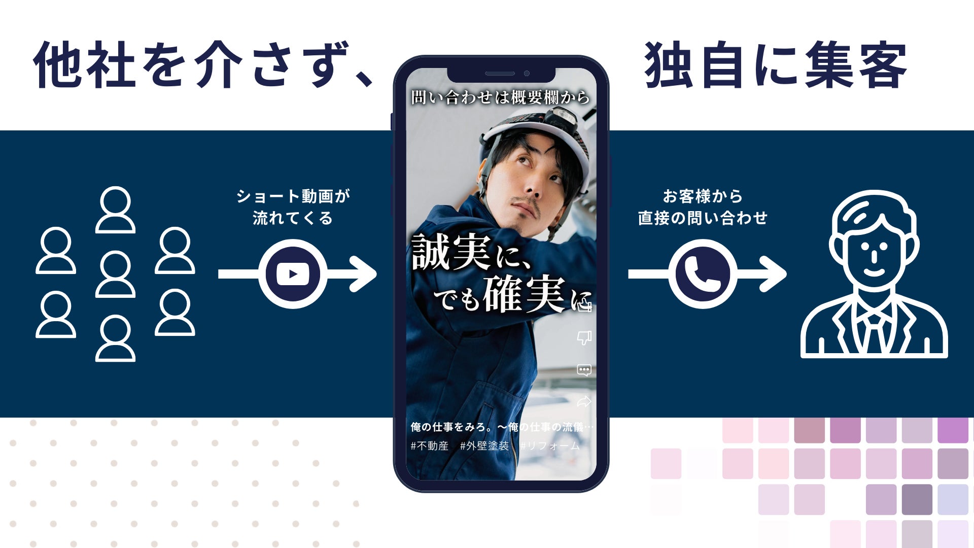 動画視聴者をファン化することで、プラットフォームや一括サイトを経由せずに集客できるため、成約手数料や紹介手数料が不要になります。また、他社の見積もりに振り回されることなく、質の高い安定した集客が実現可能です。さらに、動画SNSは採用面でも高い効果を発揮するため、優秀な人材の獲得にもつながります。
