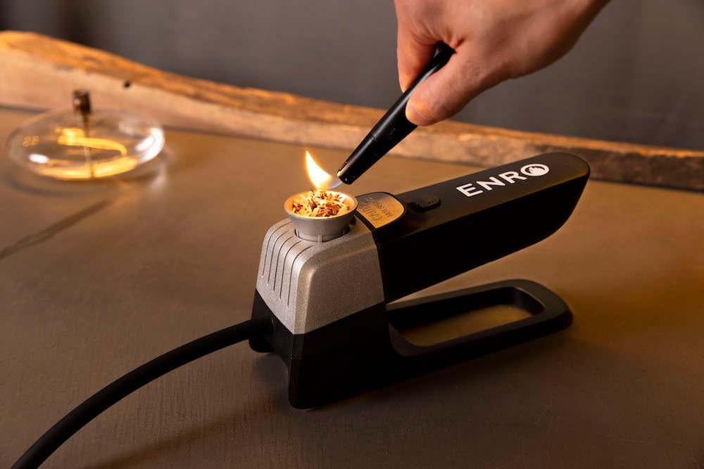 燻製チップを入れて火をつけてスイッチオン!5分待つだけで燻製料理が楽しめちゃう優れもの。