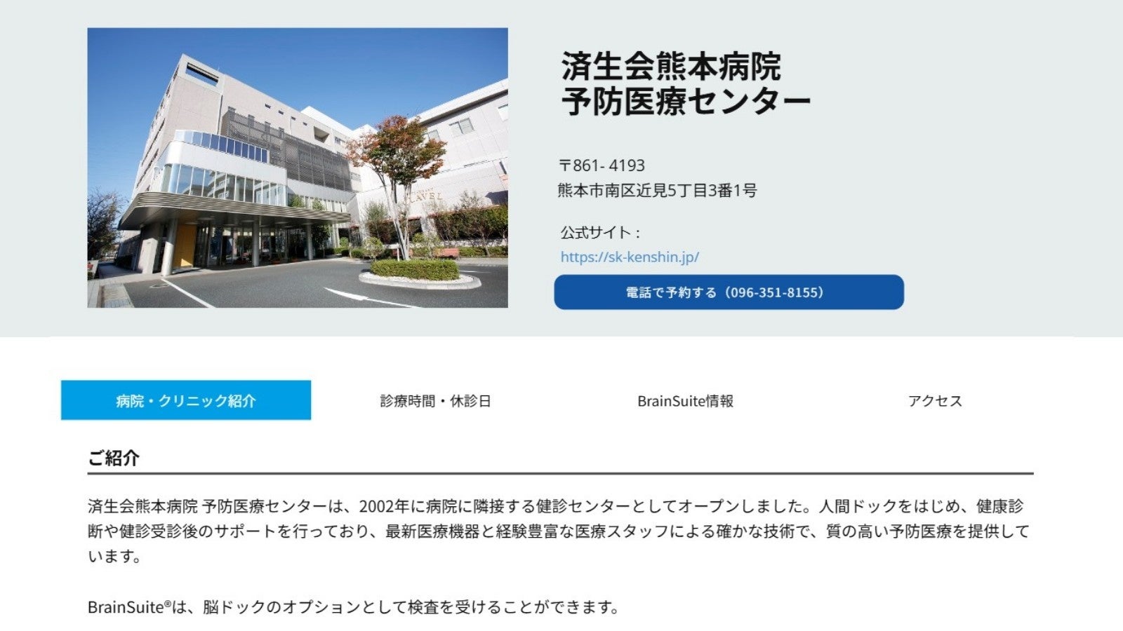 このたび、済生会熊本病院 予防医療センターへのBrainSuiteの導入が決定し、大変光栄に思います。
