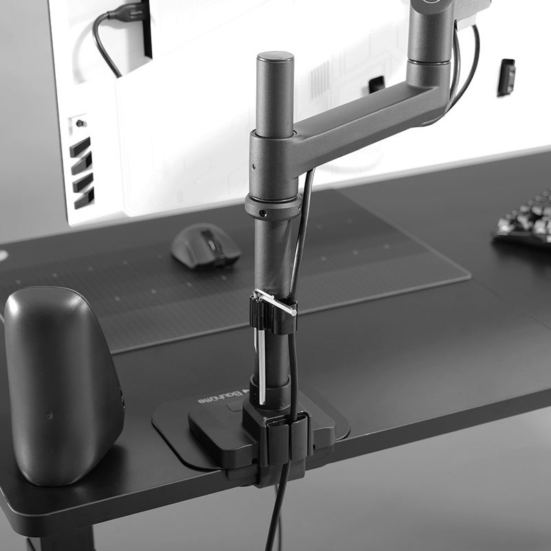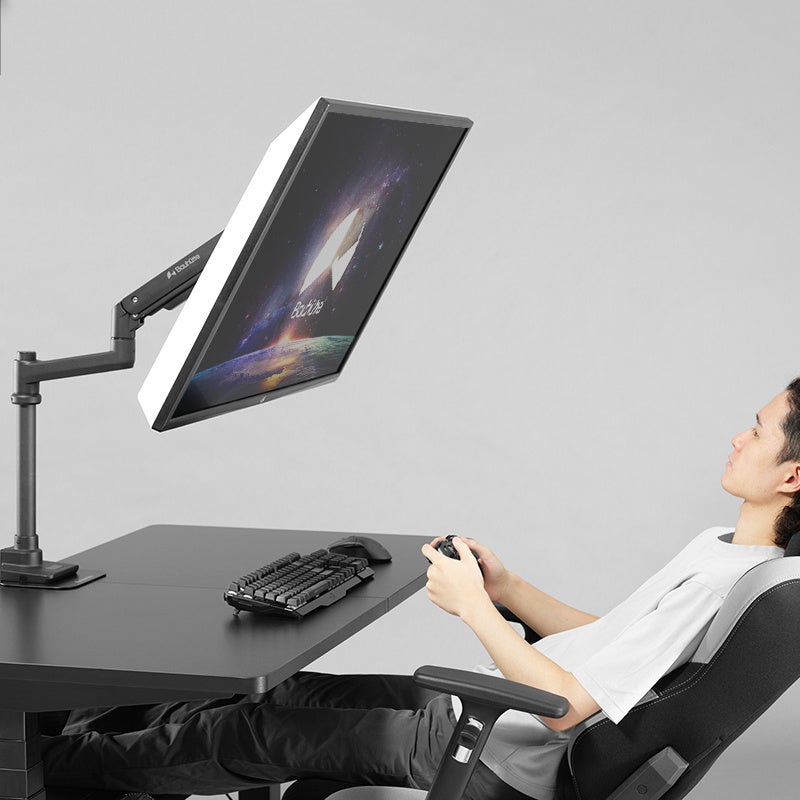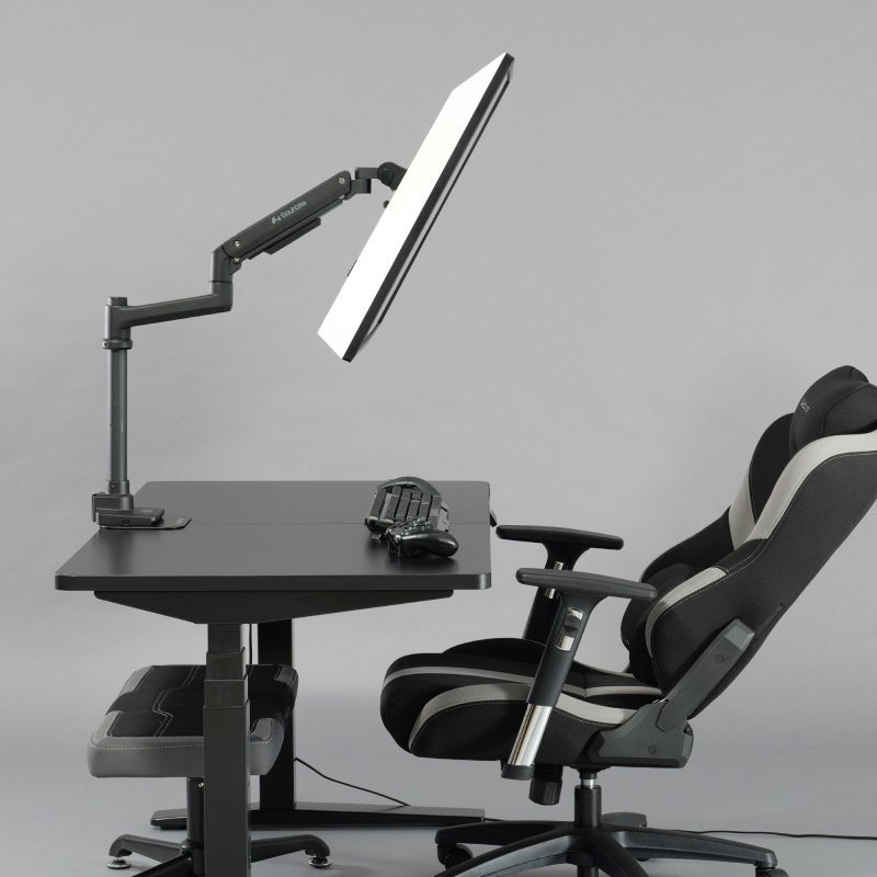 重たい大型モニターを取り付けていても軽々スムーズに昇降可能なガス圧式アームを採用。力をかけなくても難なく大型ディスプレイを動かせます。また、各関節部の可動域は広く設計しており、作業内容やプレイスタイルに合わせた、最適なモニターポジションを追求可能です。