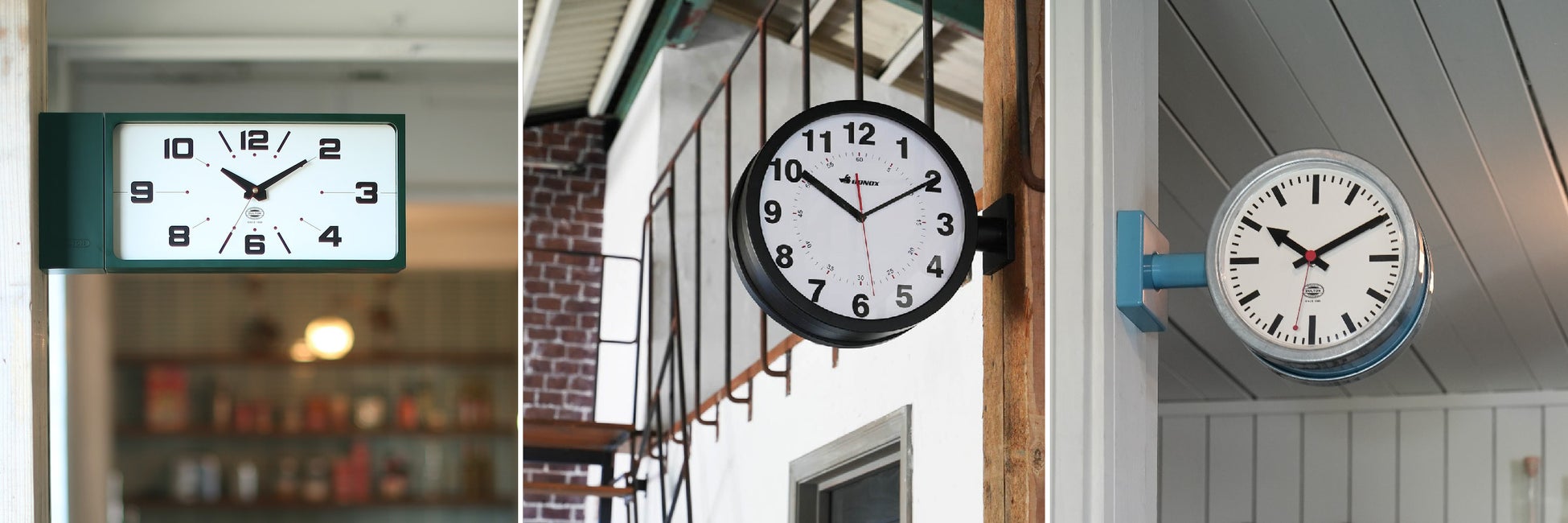 駅構内などの公共施設で使われるような大型の両面時計をインテリアで提案し、家庭用時計に新たな潮流を生み出しました。