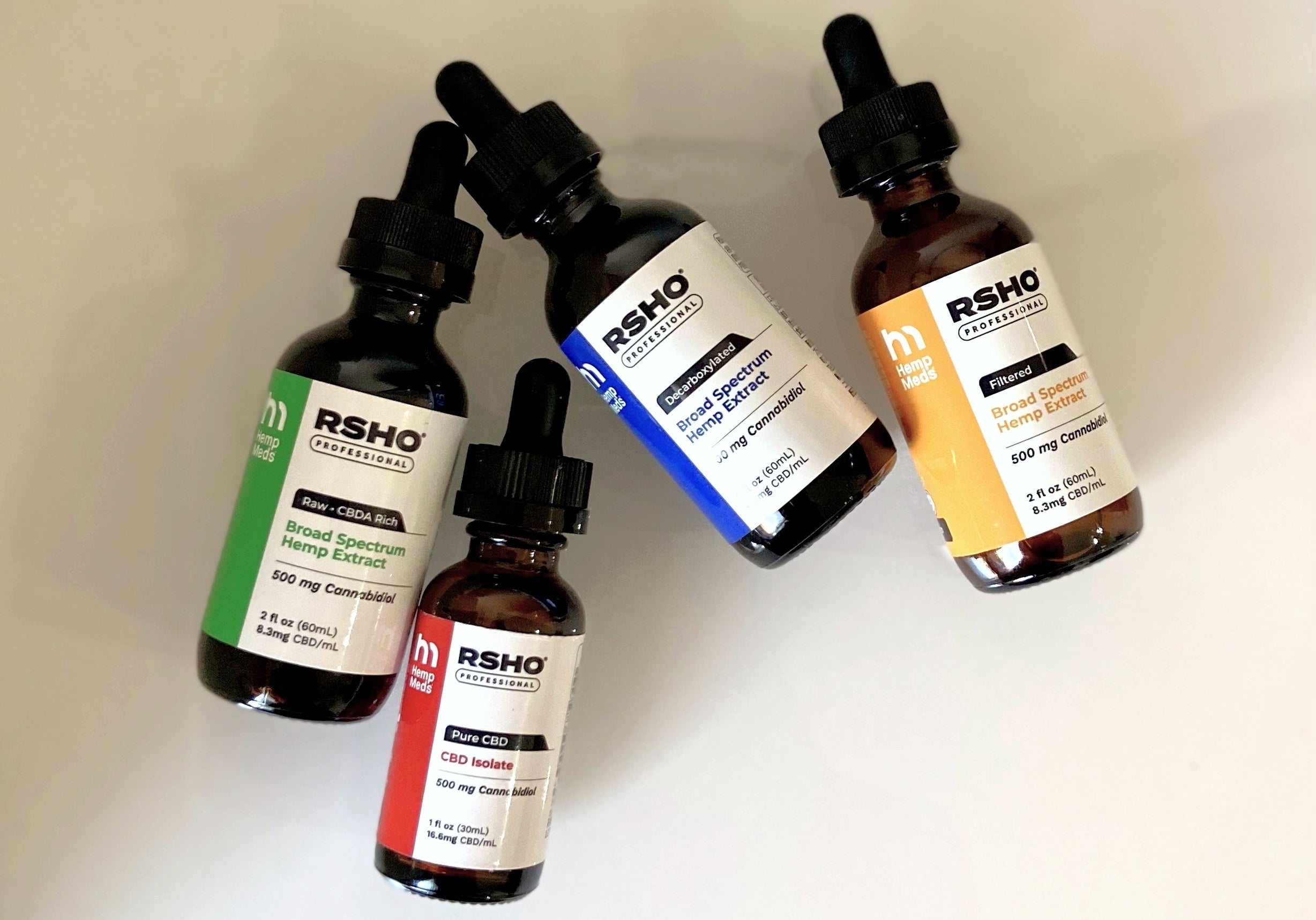 CBDa(CBD酸)などヘンプ由来の成分を多く含む「RSHO グリーンラベル」から、用途や目的・濾過の度合いに応じて「RSHO ブルーラベル」「RSHO ゴールドラベル」、そしてアスリートなどCBDだけにアクセスしたい方向けにはCBD以外のヘンプ由来成分を含まない「RSHO-X ナチュラル・アイソレートティンクチャ」をご用意しております。